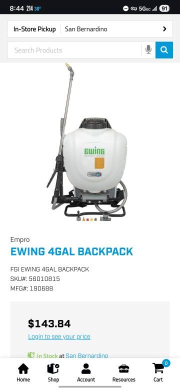 Brand new in box 4 gallon Ewing backpack sprayer. $143 from Ewing brand new. $115 obo