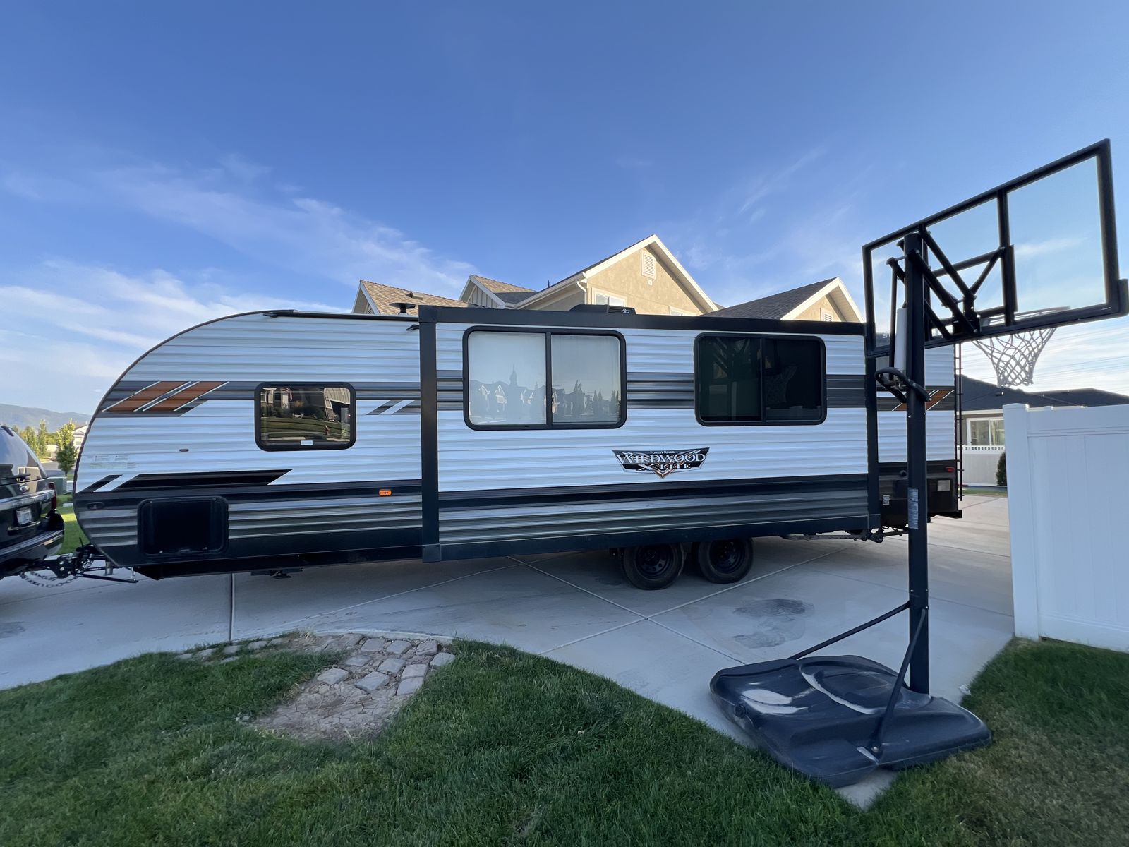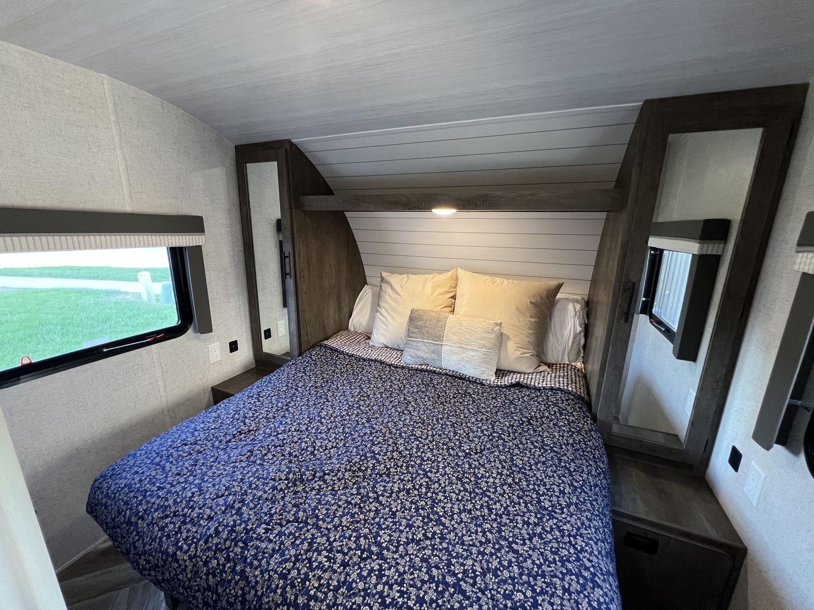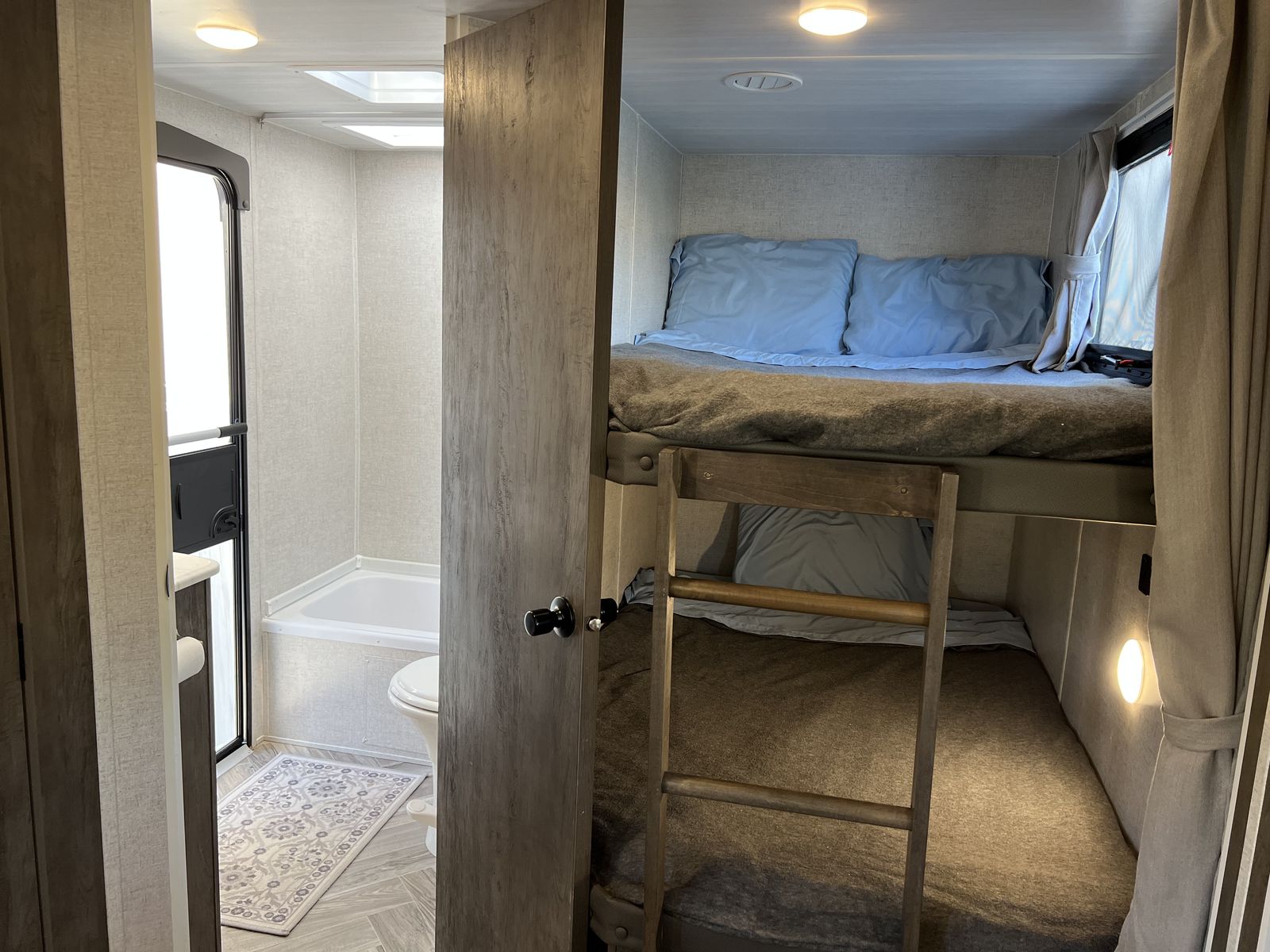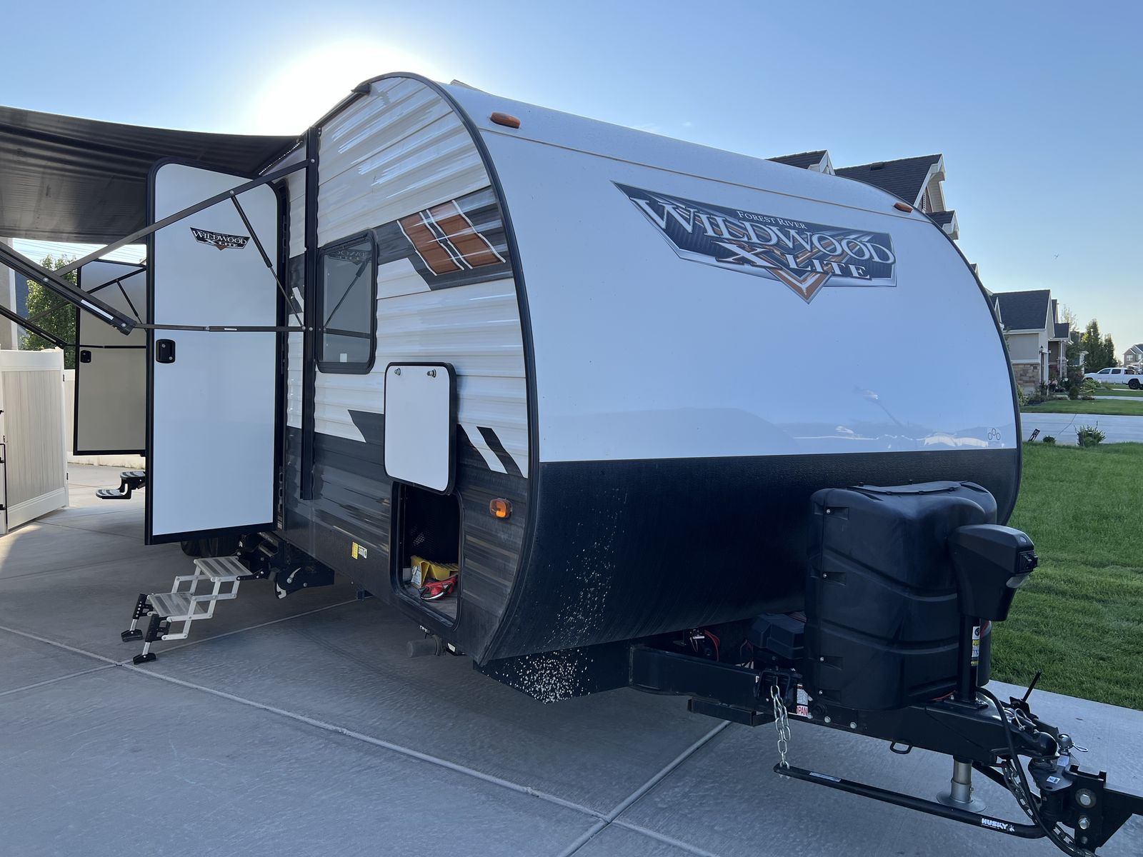 Sleep up to 10 in this thoughtful layout with versa lounge seating. Private queen bedroom in addition to double bunks, fireplace, large pantry, and plenty of storage. Outdoor griddle and mini fridge. Power patio awning, power stabilizer jacks, power tongue jack, and large power slide-out. Wired for solar, Original owner, no pets, well maintained in clean, excellent condition!