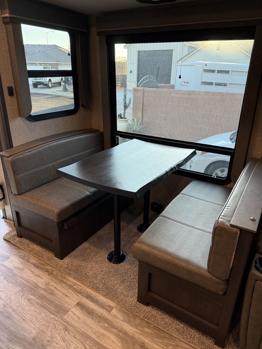 Everything is in great working order. It still smells new! All furniture is in excellent condition. Been garaged since purchased. No paint peeling and the roof is in excellent condition. Tires only have 5000 miles on them. It is ready for your next upgraded adventure!