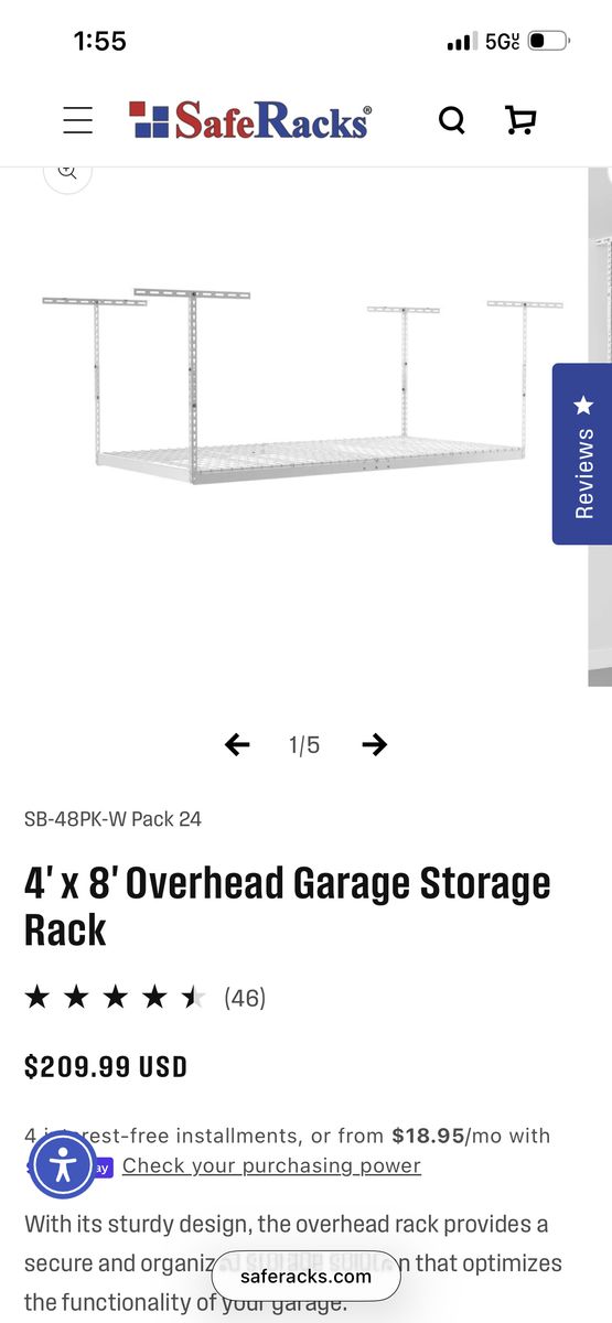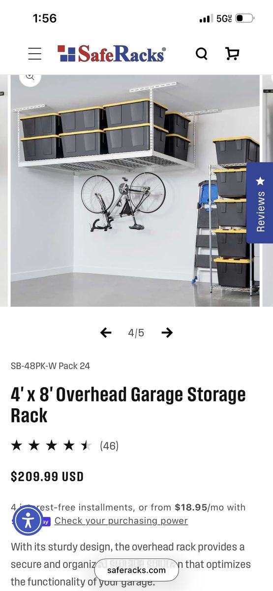 VenmoNew in box Safe rack 4'x 8' Overhead Garage StorageRack Can hold up to 800lbs I have 6 white ones available. $150 OBO
