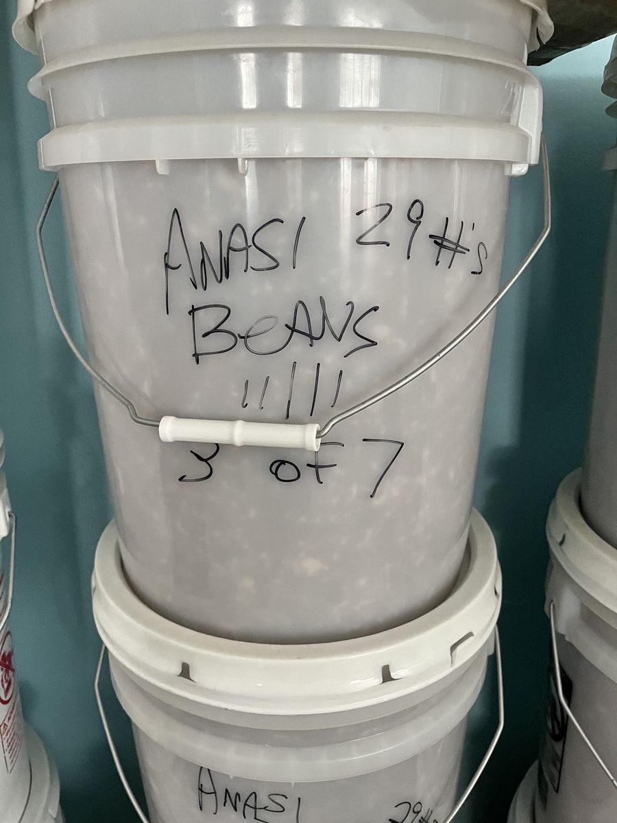 VenmoFood storage for sale downsizing these are all in buckets sliced potatoes $12.00 a bucket, rolled oats $8 a bucket, Pinto beans $10 a bucket, Anastasia beans $25 a bucket, field corn 11.00 a bucket, popcorn $19.00 a bucket, soybeans $22.00 a bucket, sugar $8 a bucket, whole eggs $140 for six gallon bucket.
