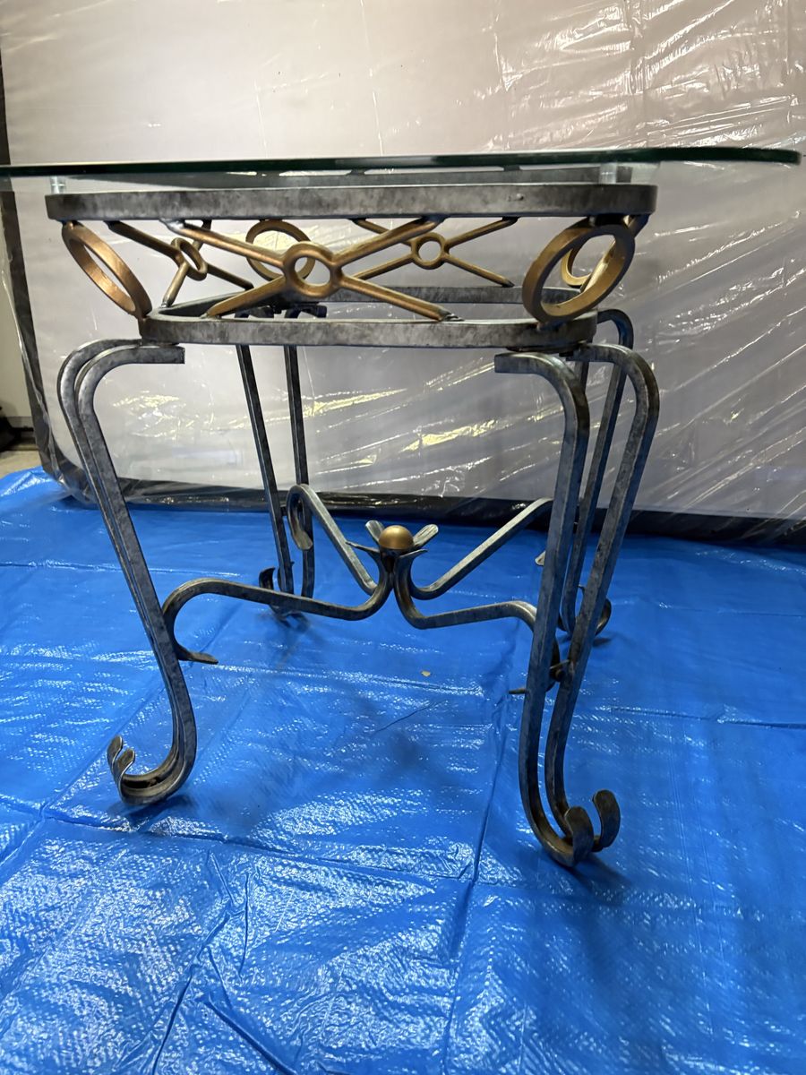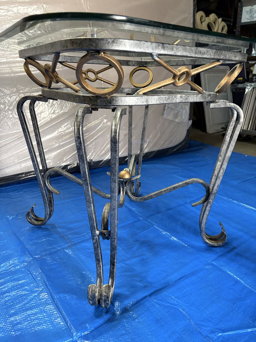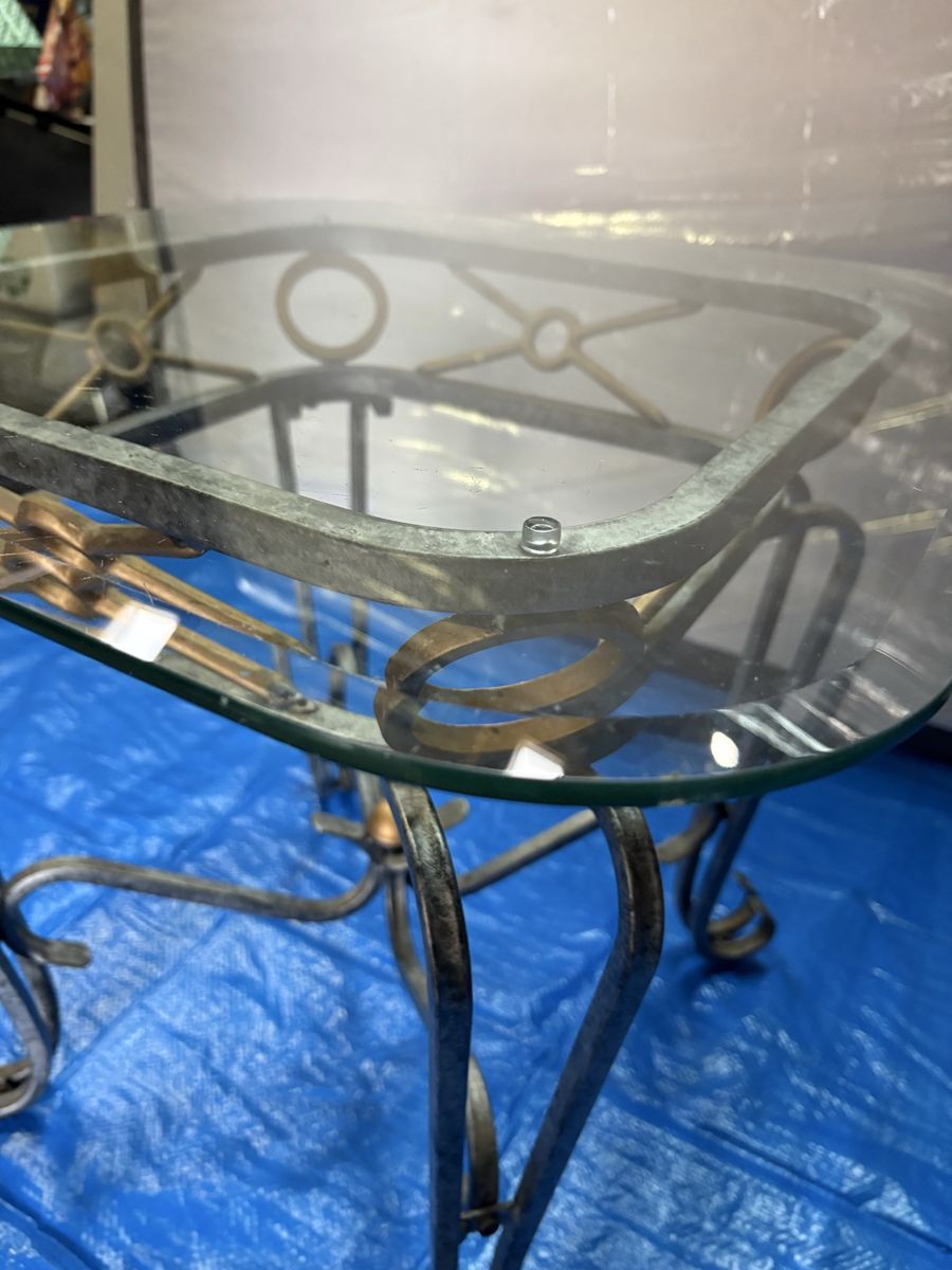 VenmoBeautiful decorative metal and glass accent table with elegant scroll legs and gold accent details. Great size for a living room end table, entryway table, or bedside table.