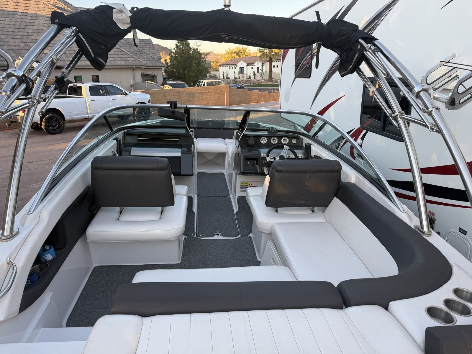 The boat runs great and has been well maintained. Clean interior and exterior. Great family lake boat.