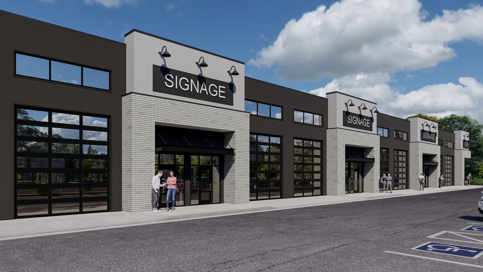 • Flexible Layout: Retail storefronts paired with 14’ High Overhead Bay Doors