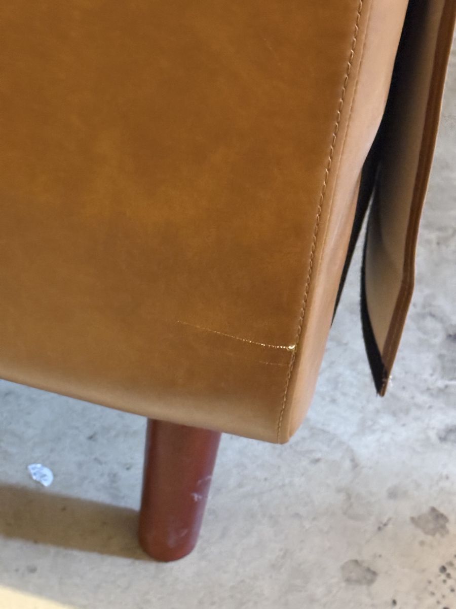 Great condition. No stains or rips. Small scratch on the back left
