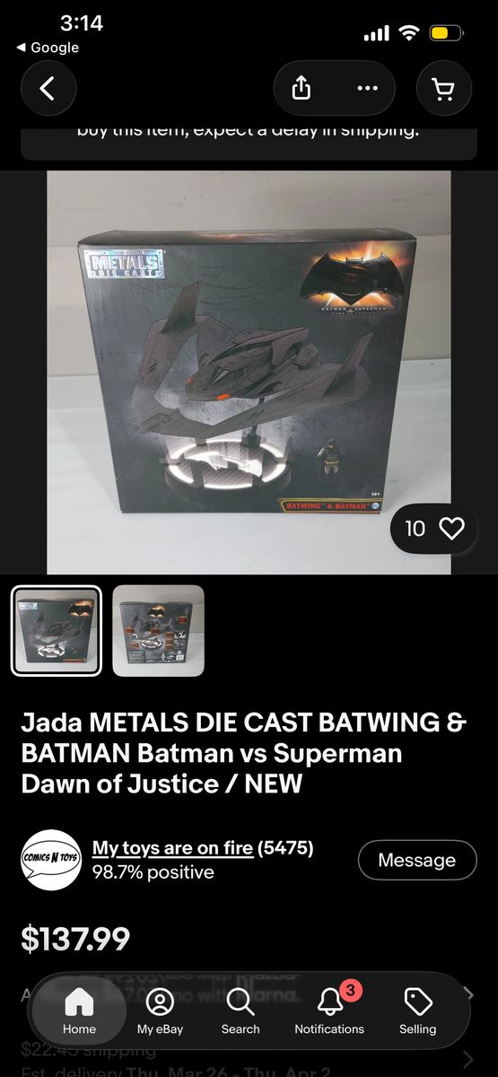 ApplePayJada METALS DIE CAST BATWING & BATMAN Batman vs Superman Dawn of Justice / NEW