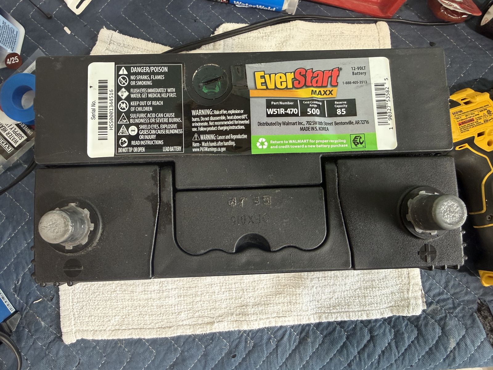 Battery Details • EverStart Maxx • Part #: W51R-470• 500 Cold Cranking Amps (CCA)• Reserve Capacity: 85• Group Size: 51R• 3-Year Replacement Warranty model