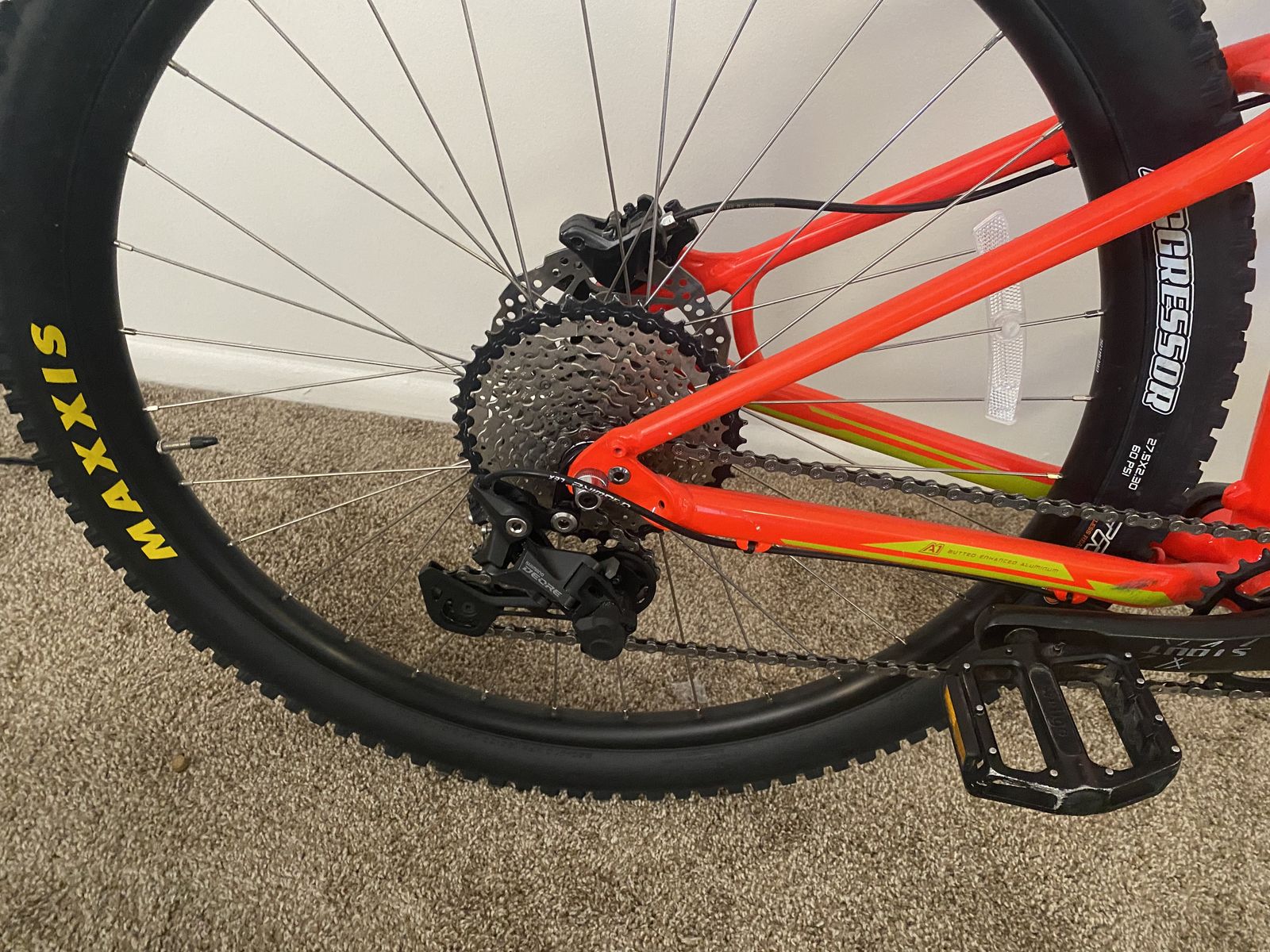 VenmoUpgrade 1x10 speed Shimano Deore, , hydraulic Shimano brakes. Frame size S, wheels size 27.5 with Maxxis tires.