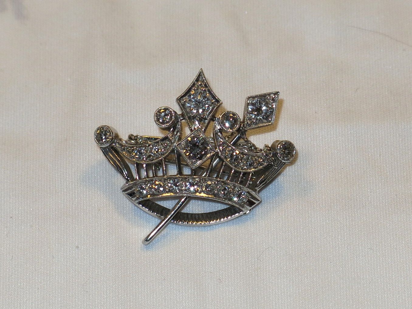 This is a very lovely one of a kind 1940's pin made of vintage platinum.