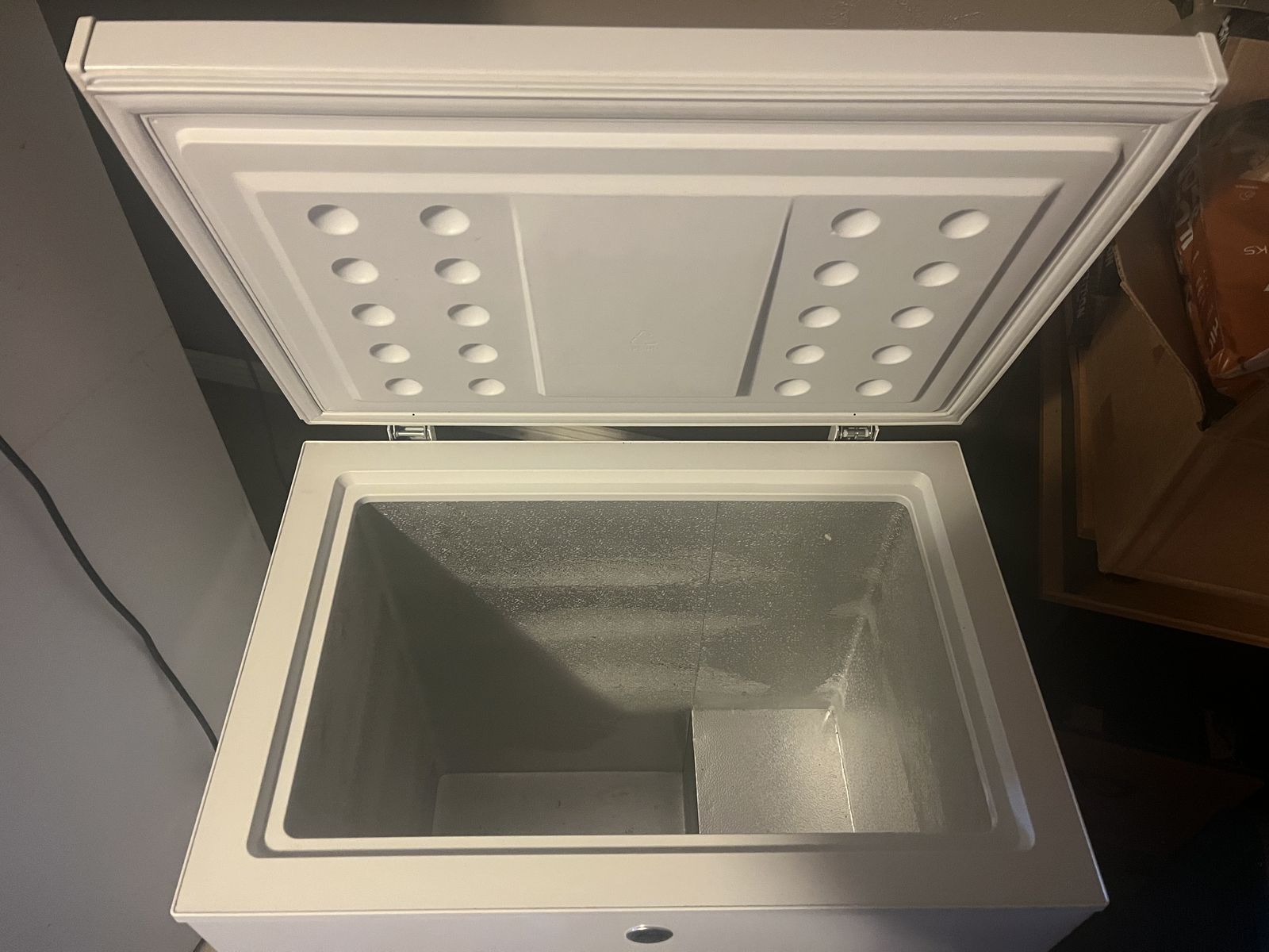 We bought this brand new and probably used it for about 3 years. It is a good freezer. Our family just got bigger and we got a bigger one. Should be a good freezer for a long time.