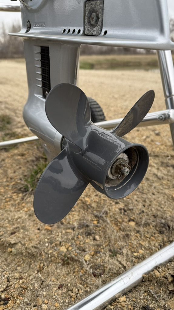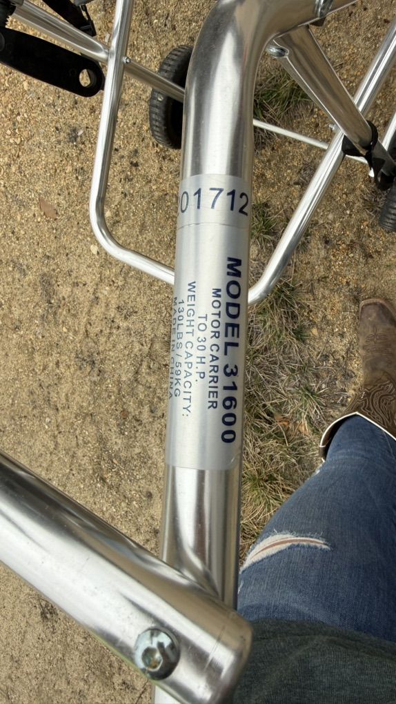 This motor has been well cared for and stored properly. It comes mounted on a motor carrier stand with wheels for easy transport and storage.
