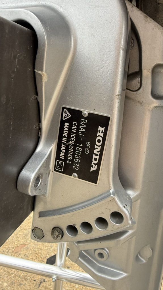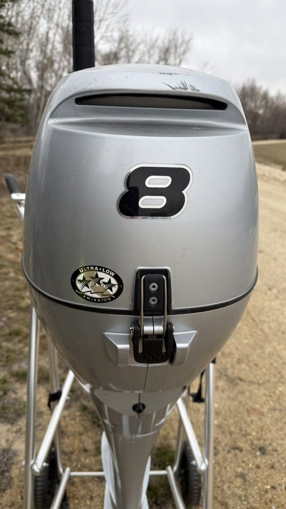 ZelleHonda 8 HP 4-stroke outboard motor (BF8D) in very clean condition. Honda motors are known for reliability, quiet operation, and excellent fuel efficiency.