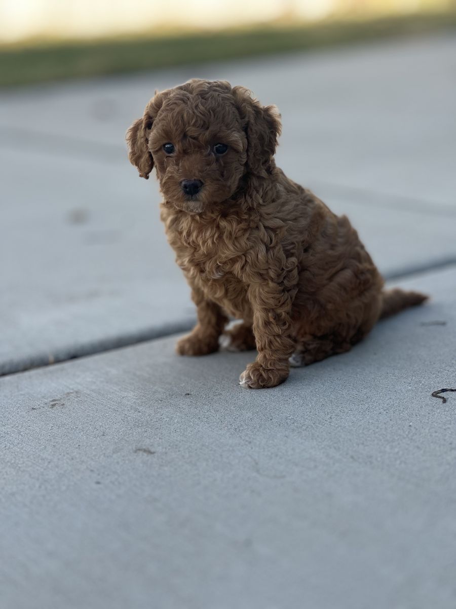 Arugula “Roogie” is a 3.5 lb F1BB micro mini Goldendoodle. He is Embark health tested and clear of over 250 genetic conditions! His semen analysis shows excellent motility and count. Roogie is in perfect health, has a phenomenal non-shedding coat that stays soft and puppy-like, and is easy to groom. He is smart, was easy to train, and has a friendly, playful temperament. He especially loves kids and is very cuddly.