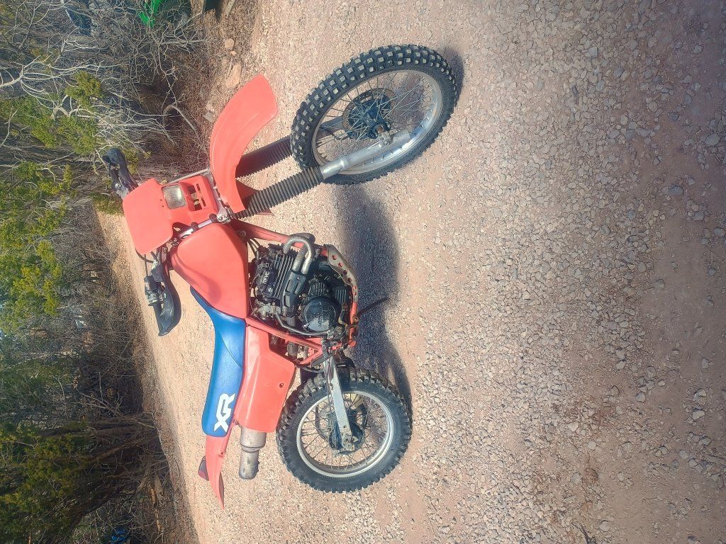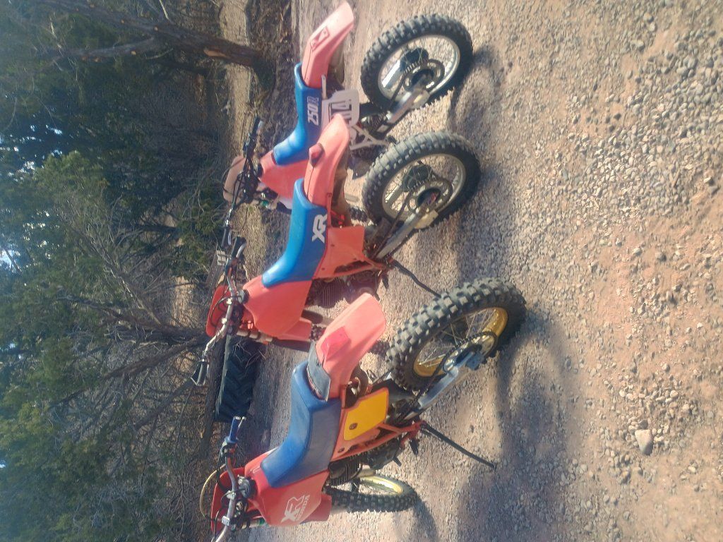 Three Honda XR dirt bikes. 1984 Honda XR350R, 1986 Honda XR600R, 1989 Honda XR250R. The XR600 and XR350 run great, the XR250 runs but needs some carburetor work. the XR350 comes with an extra set of forks and clamps as well as an extra set of wheels and two sets of tires $2800 for the XR600, $2200 for the XR350, $1800 for the XR250 or $6000 take all three. OBO