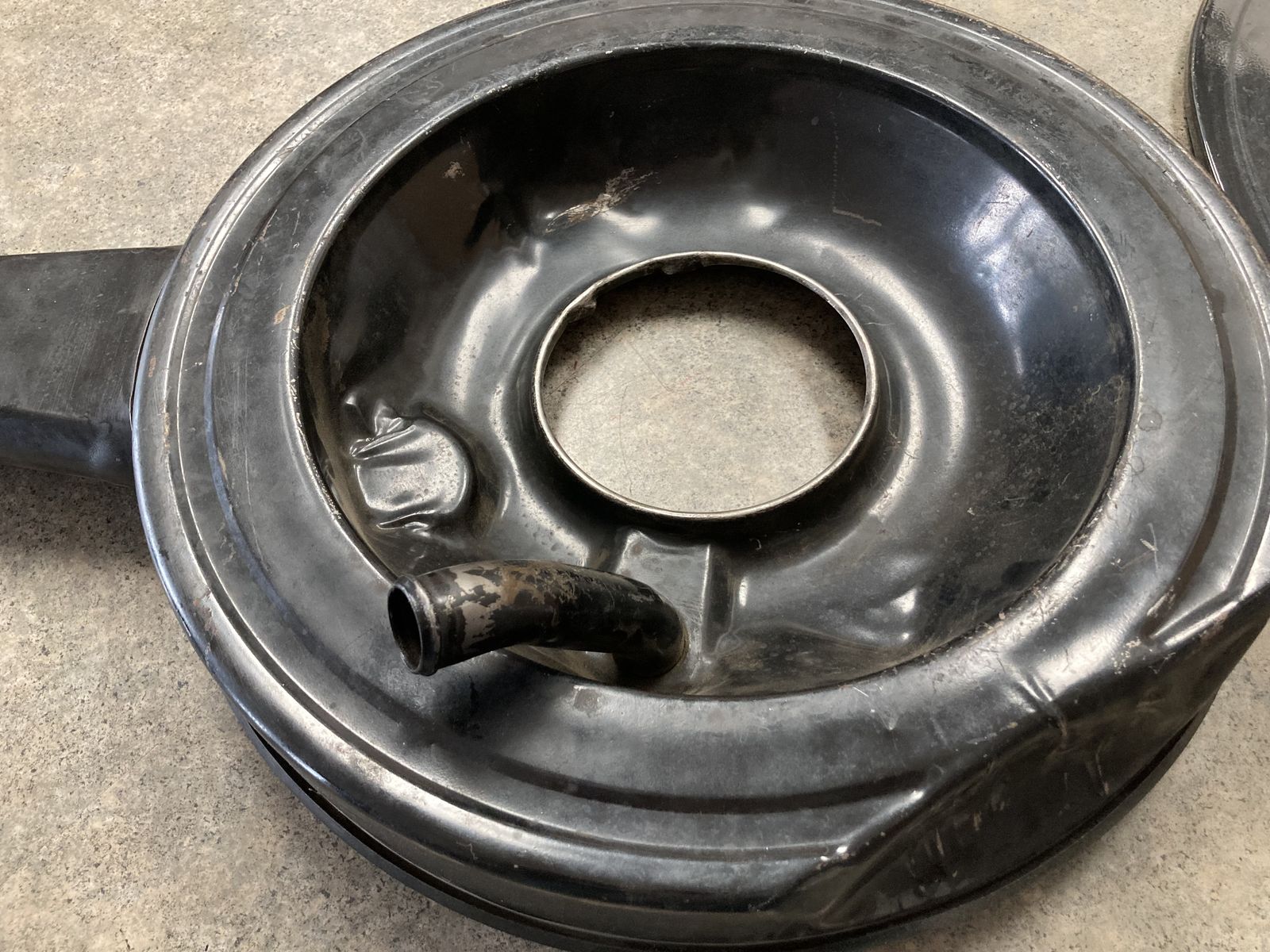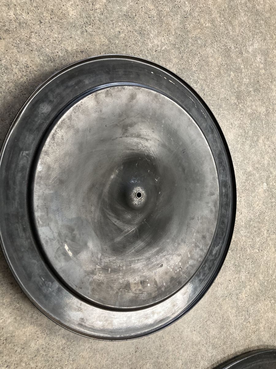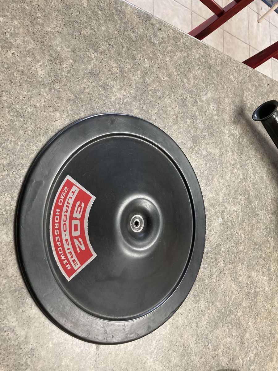 VenmoGM air cleaner base and lid. Later GM version with ridge on bottom and two 45 degree bends on vent tube. Reproduction Camaro flange and 302(short ) riser. Excellent condition. Other misc 69 camaro small parts.