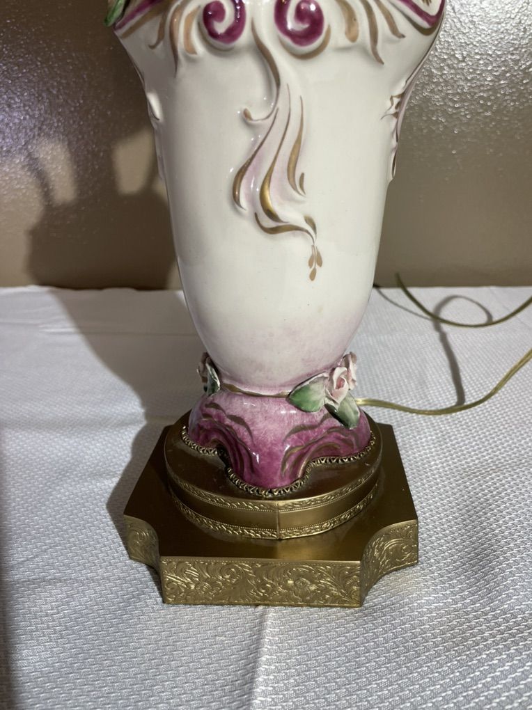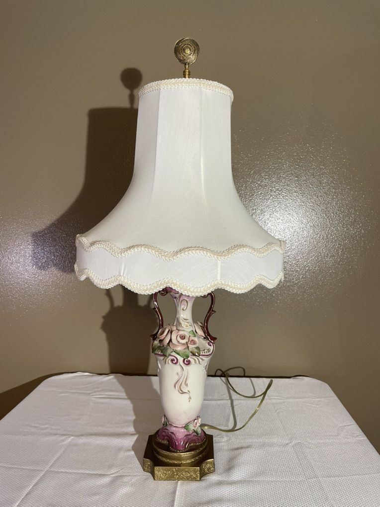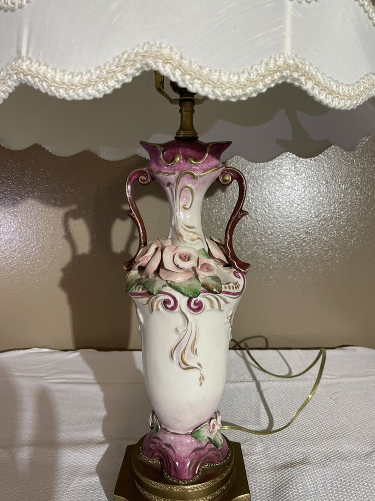 VenmoAntique porcelain table lamp. Handcrafted flowers with original shade.