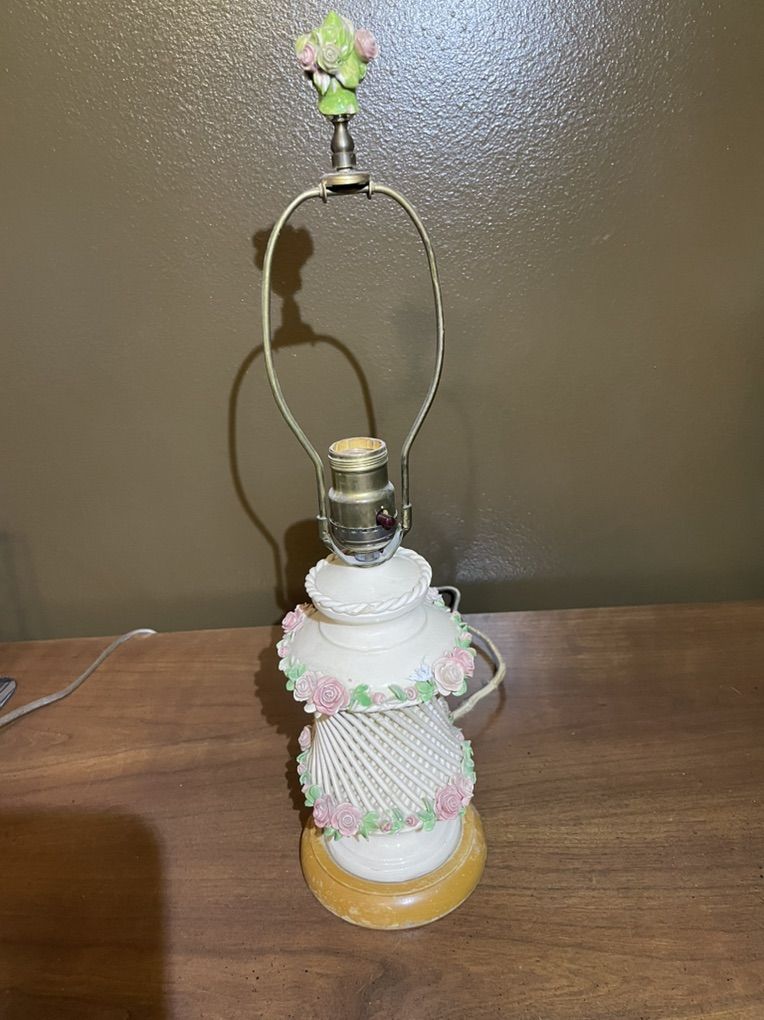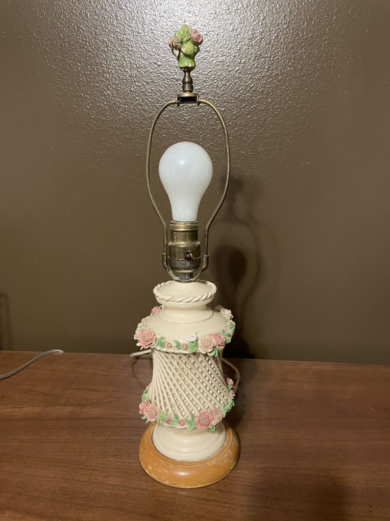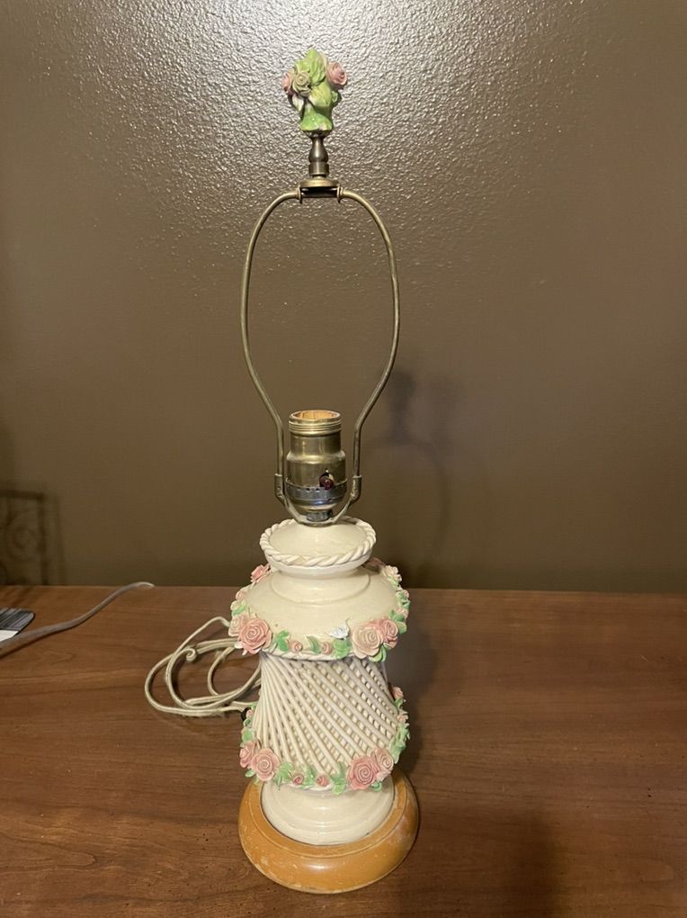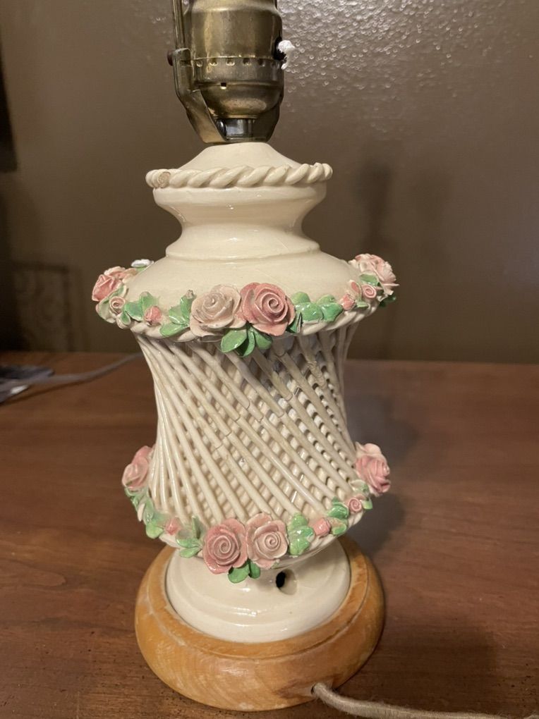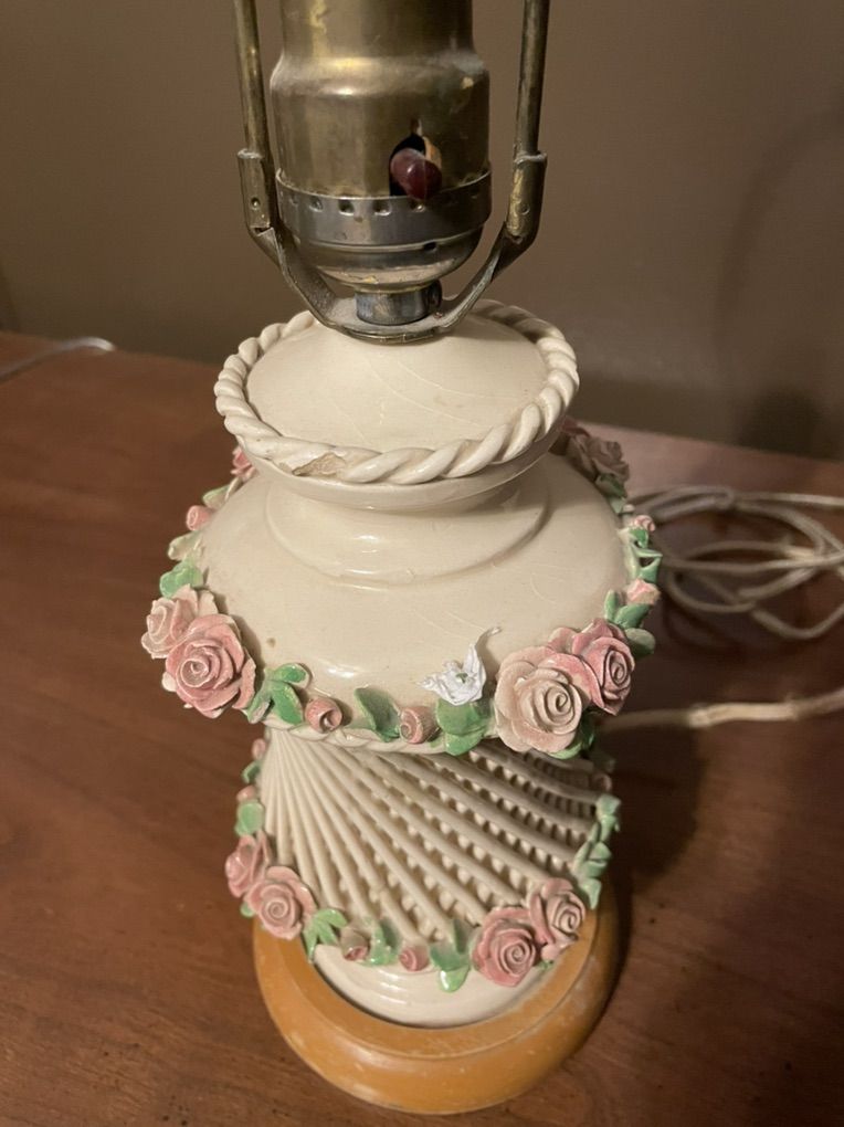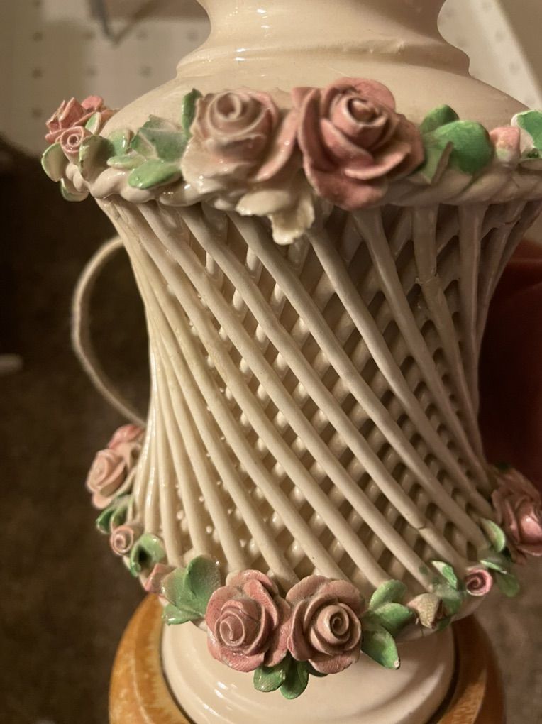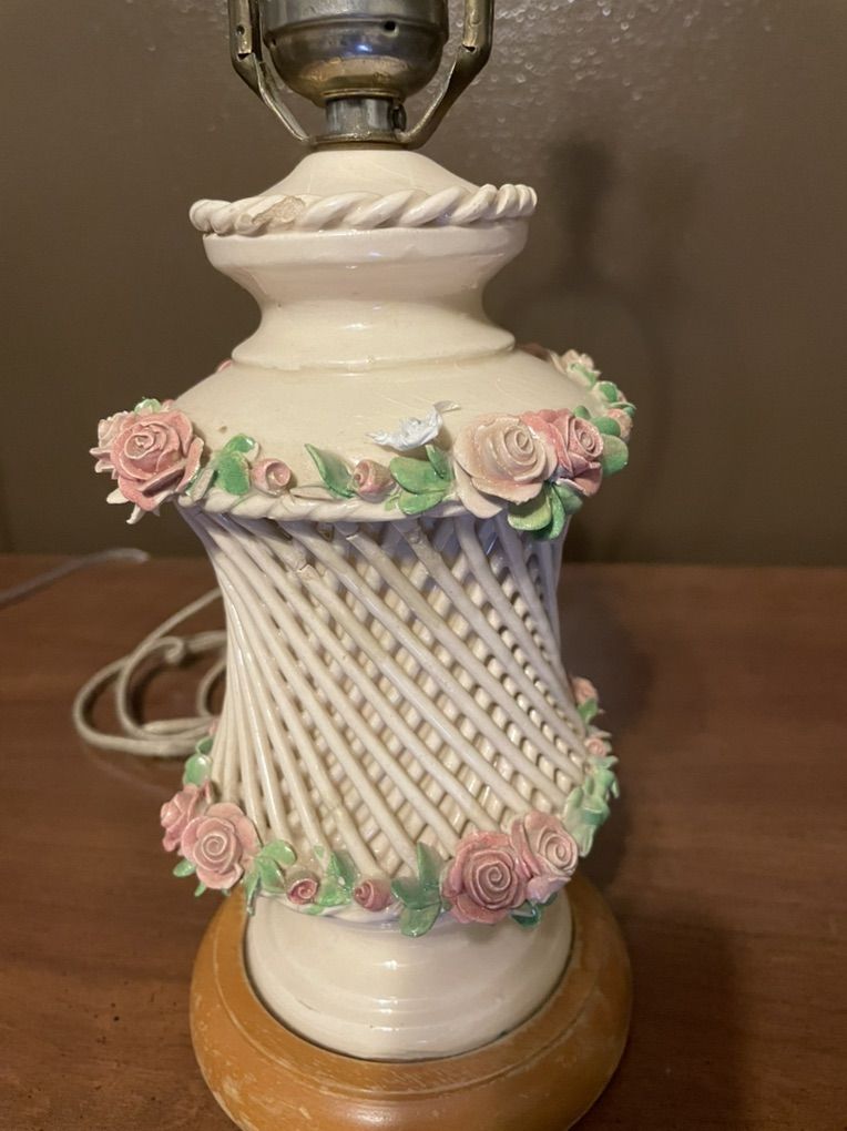 VenmoAntique porcelain table lamp decorated with handcrafted roses.