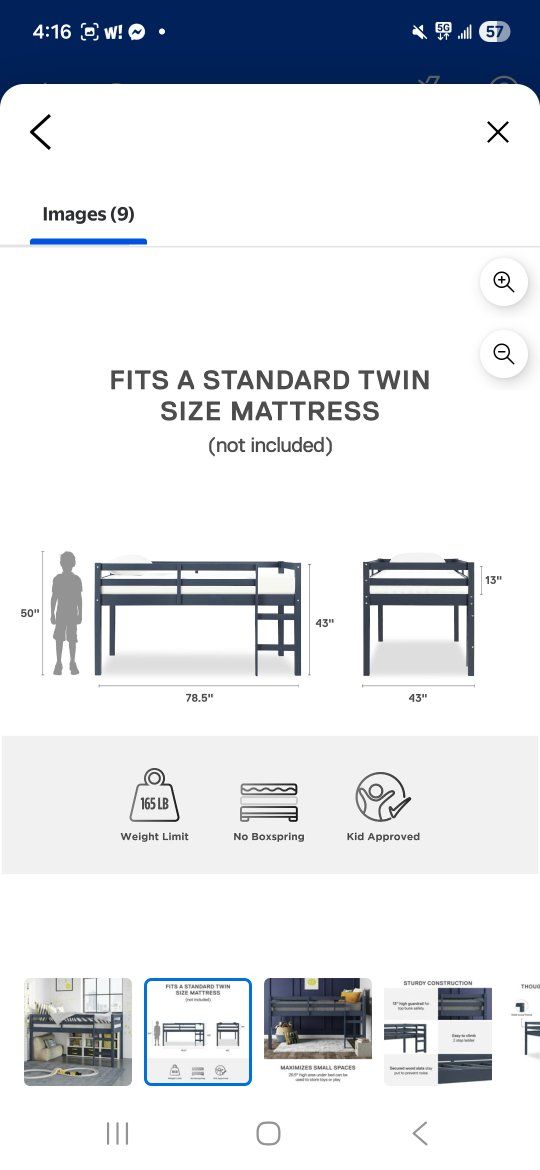 Dorel Living Milton Junior Twin Loft Bed, Blue