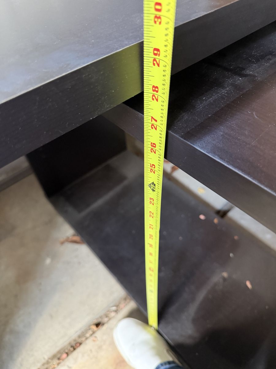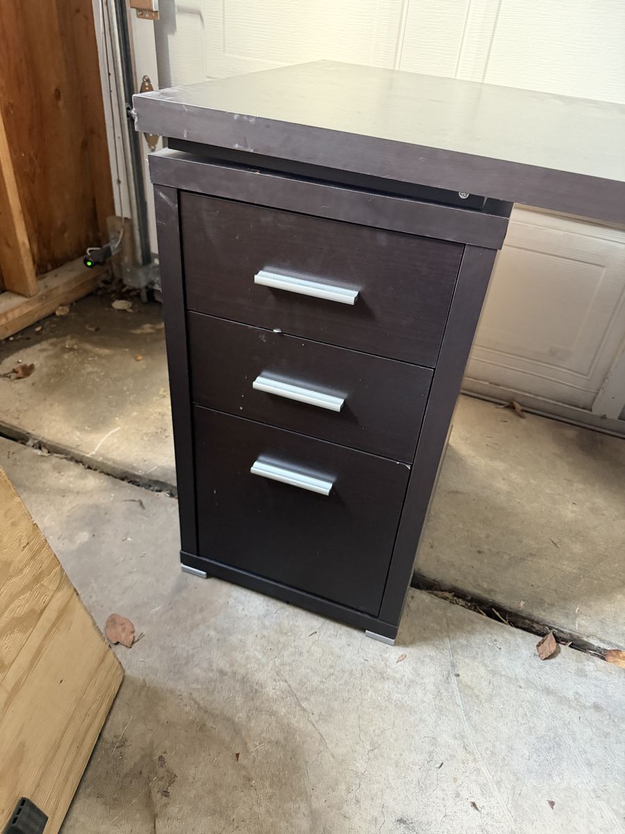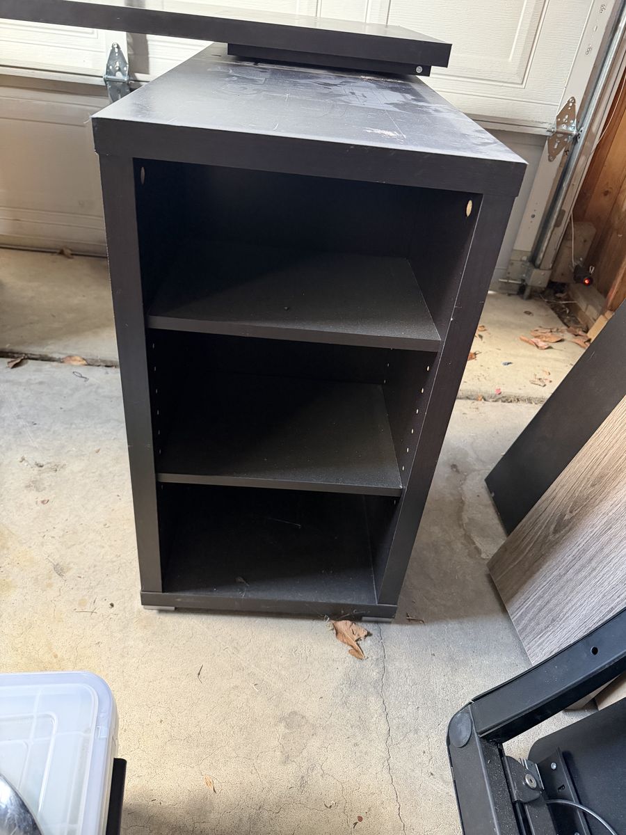 VenmoVery nice large L shaped desk 3 drawers on one side Shelves on the other side Drawers and shelves on either side can be swapped sides to change direction of L Has some scratches on it Dimensions in pictures