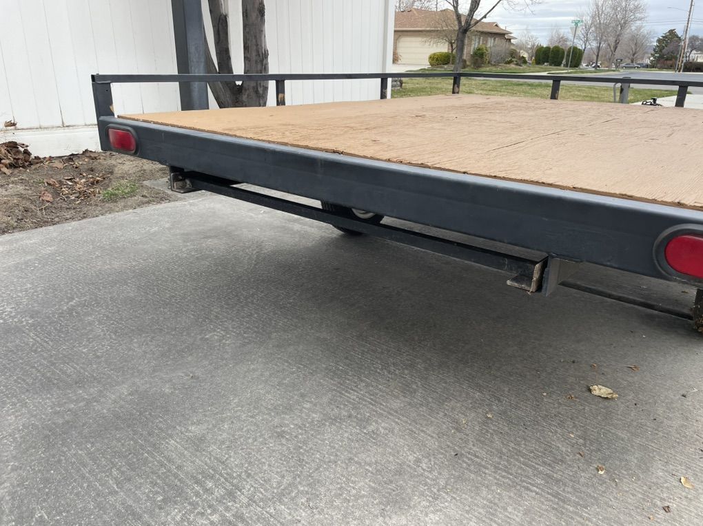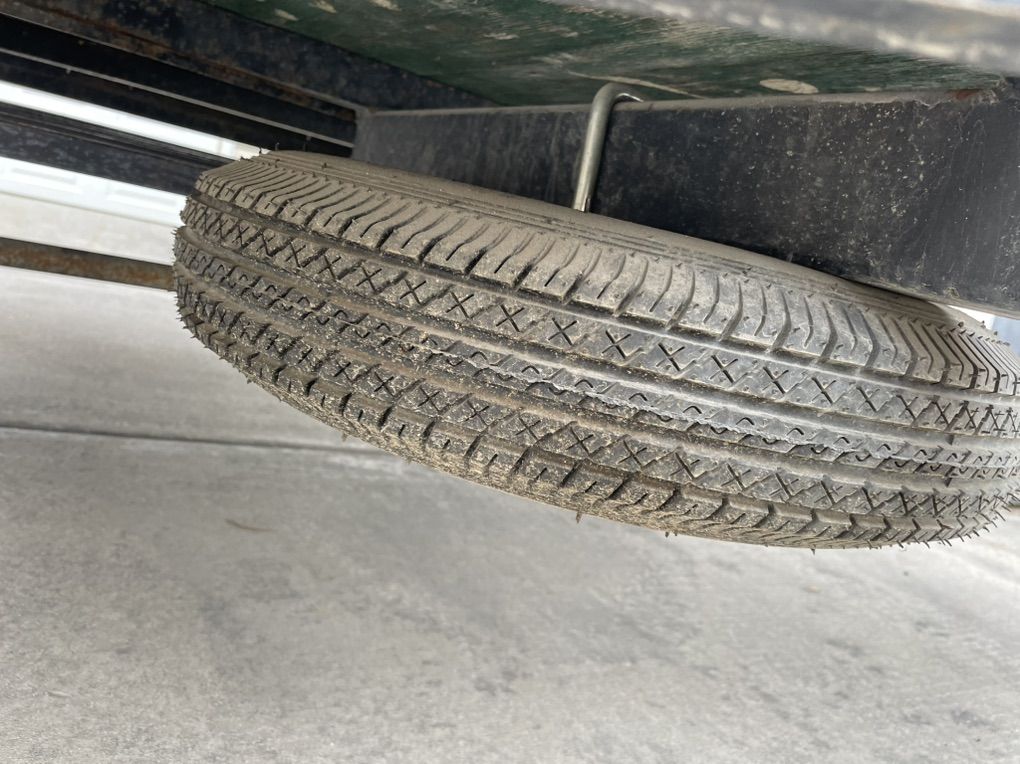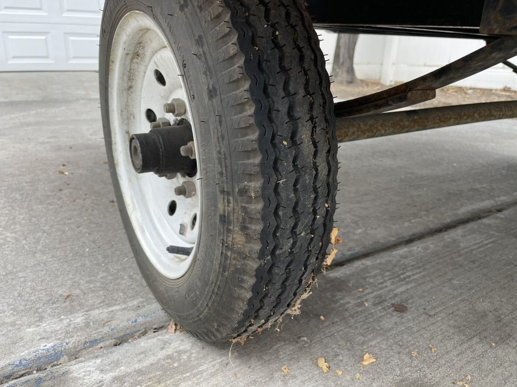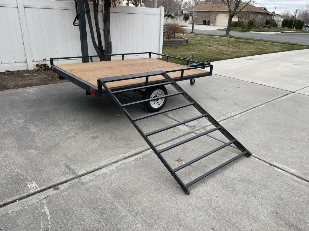 This trailer is in great condition. It is 7‘7“ long and 6‘2“ wide. The word deck is in great condition. I’ve always kept it painted. The ramp stores under the trailer for easy access and there is a spare tire great for hauling a four wheeler dirt bikes, or kayaks.