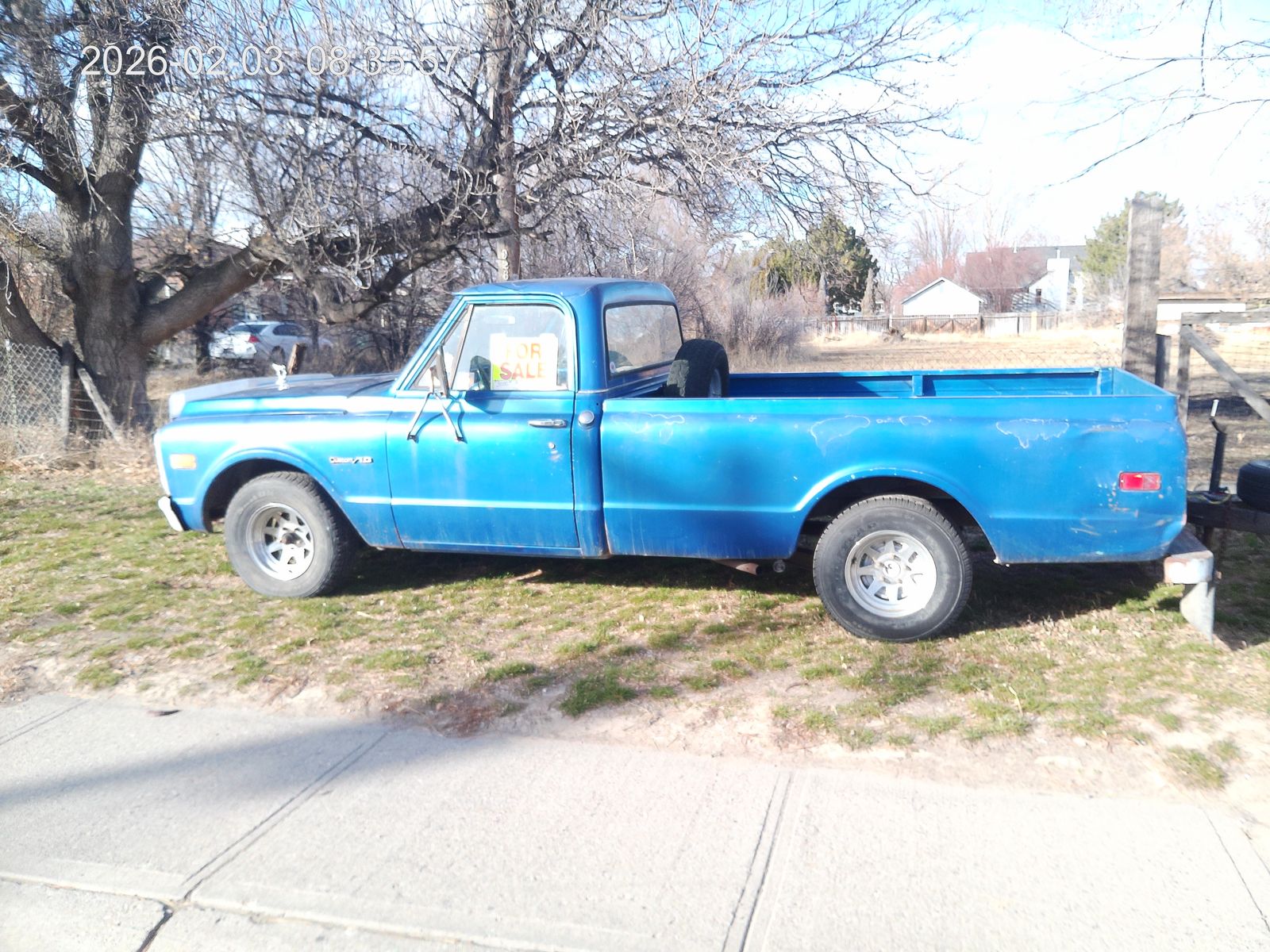 1972 Chevrolet C10 Pickup. 350 engine, 4 speed manual transmission. Edelbrock carbureator. Runs good, has a small oil leak. Tires are in great shape. Does not have power steering, but I have a power steering pump that can be installed if desired. The clear coat on the top of cab and left side of the truck needs some repair. Beautiful color. Not the original paint. 3000.00 firm. Cash only.