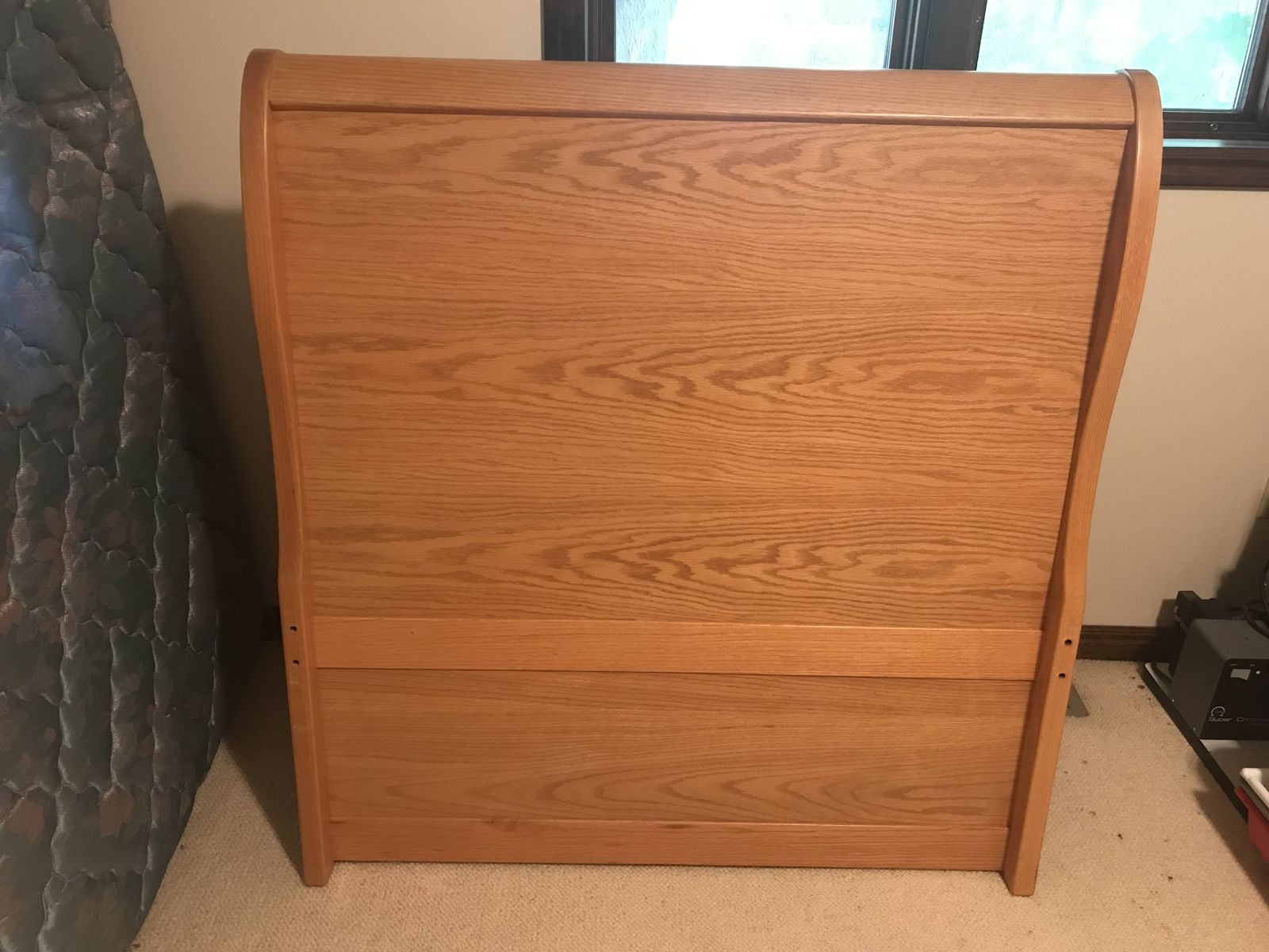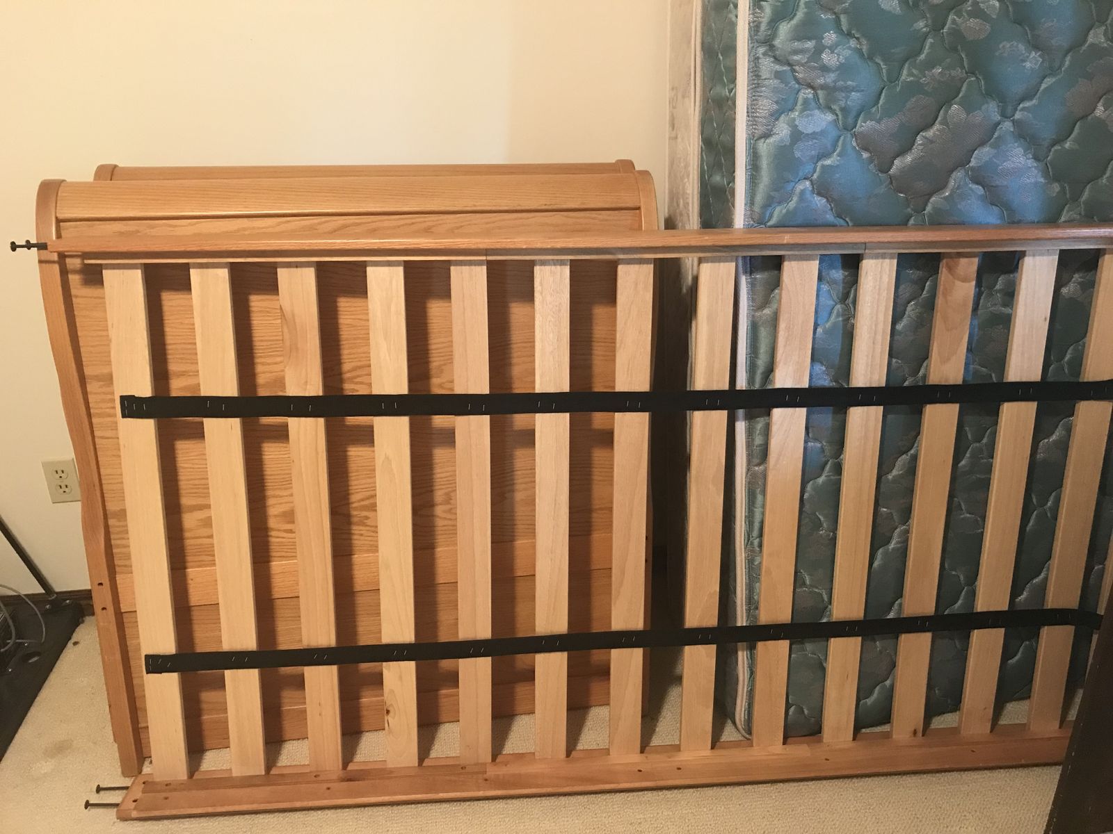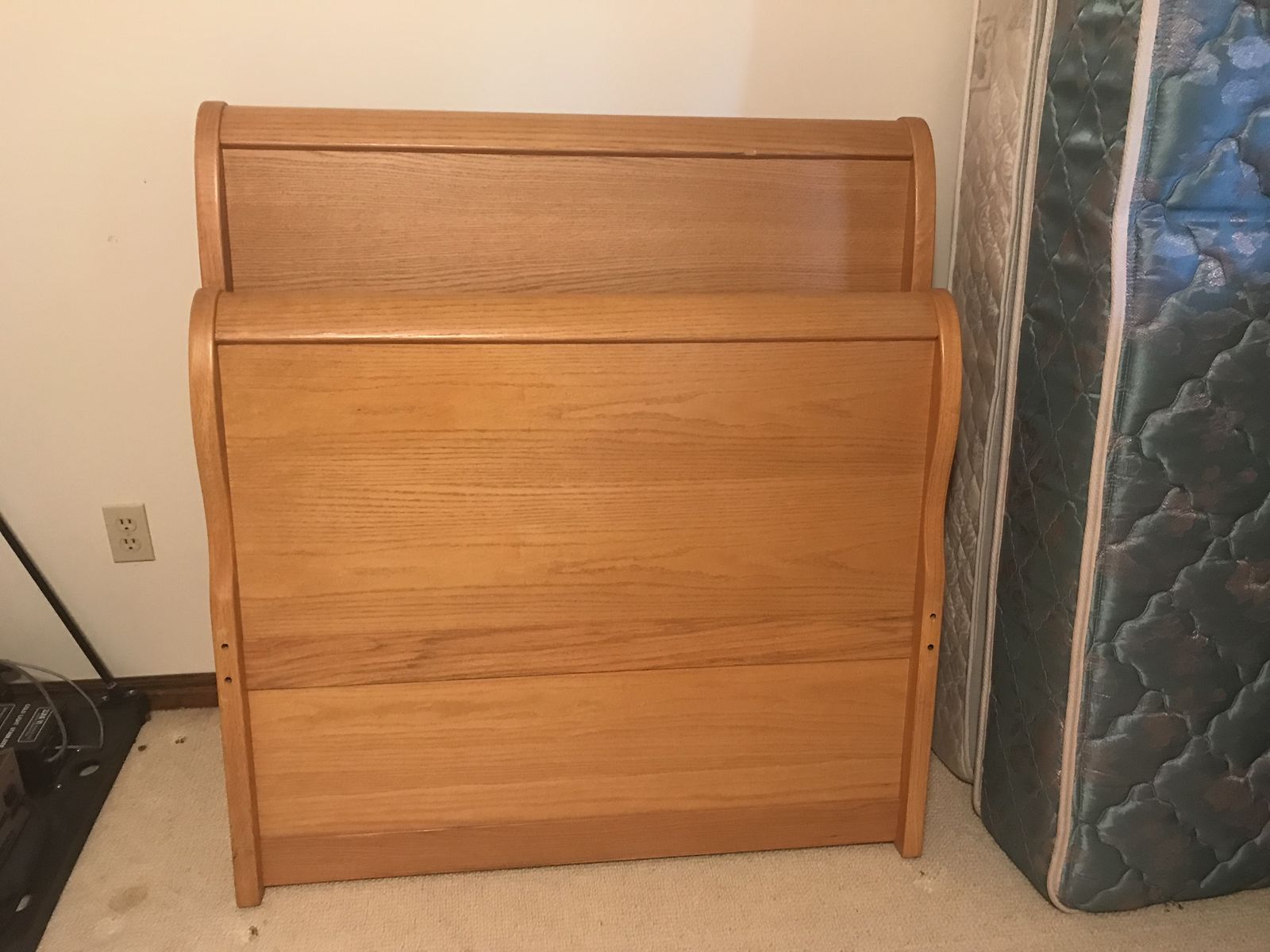 ApplePaySolid oak twin sleighbeds (2) includes headboard, footboard, slatboard & mattresses