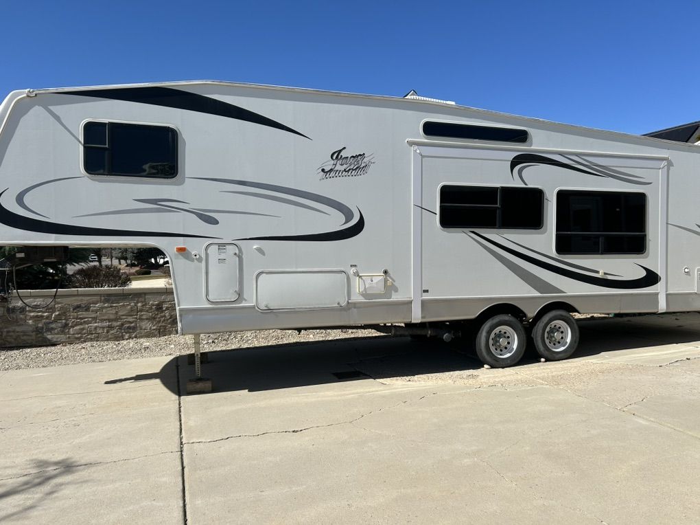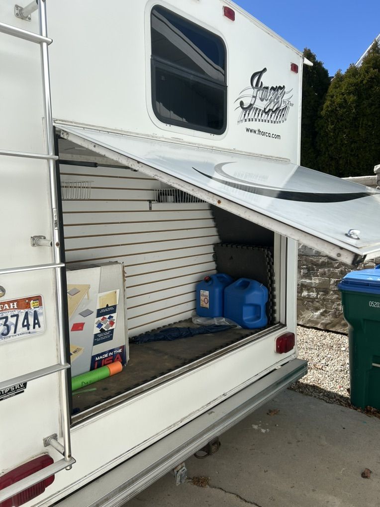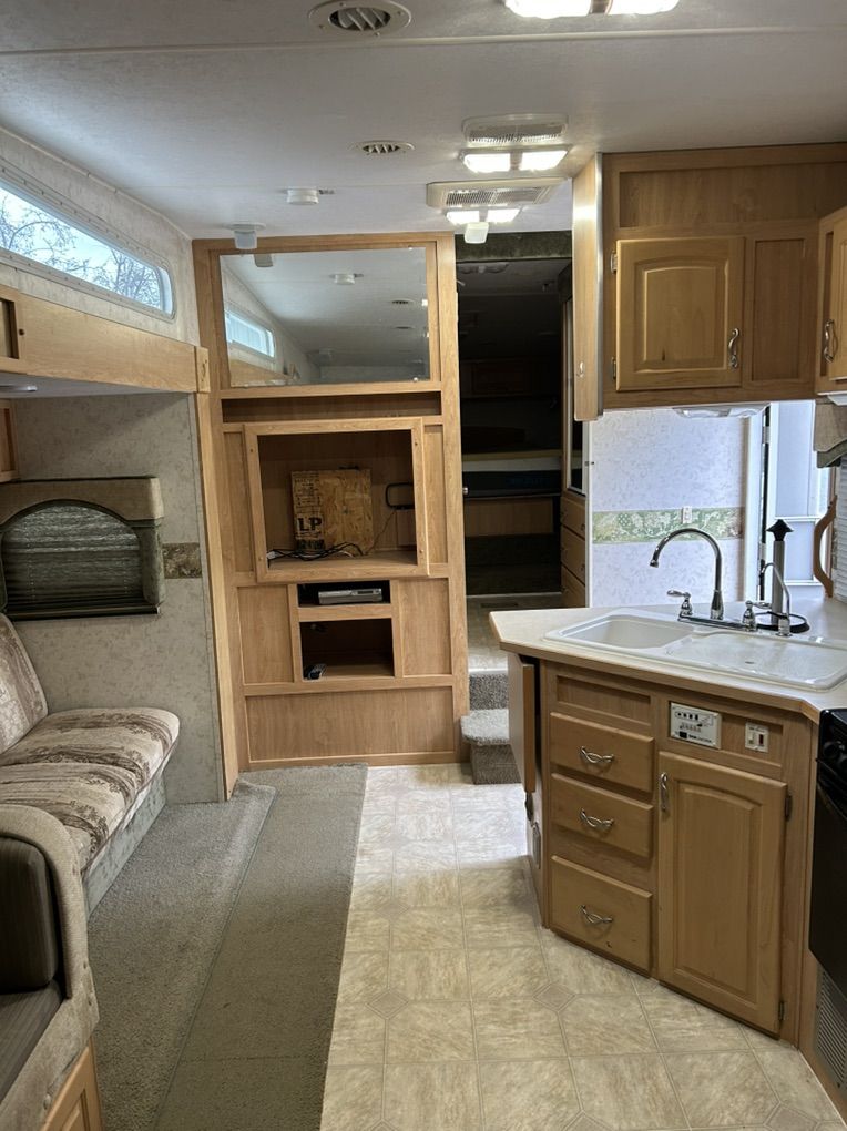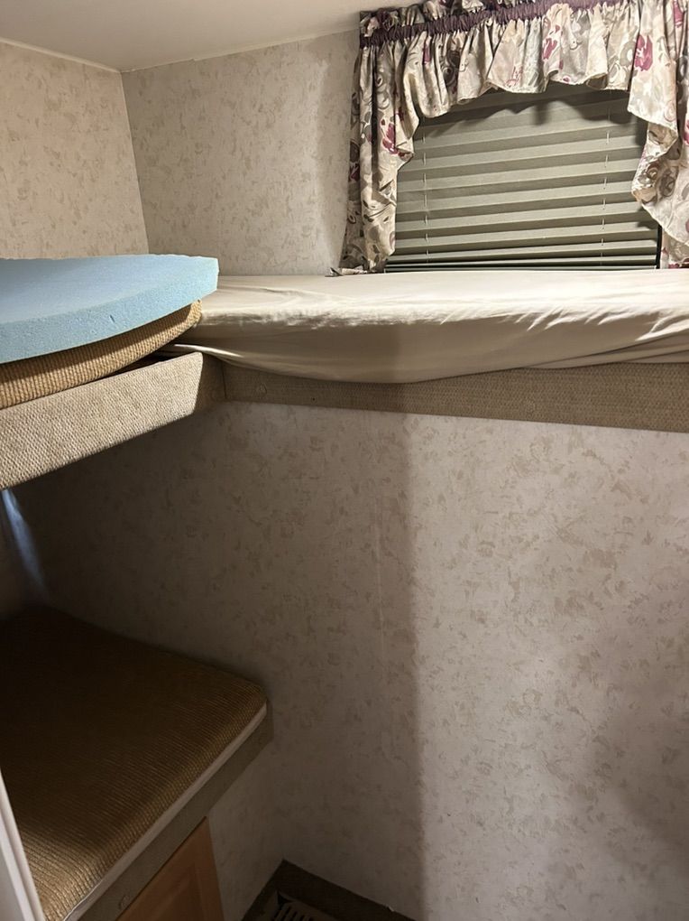 2005 Thor jazz Bunkhouse 2980 bh. This trailer is in excellent shape for the age. It’s the perfect family trailer with 3 bunks in the back of the trailer that is its own room with a door. Table and couch also fold down into beds. The trailer has tons of storage inside and out with a massive rear storage compartment in the back of the trailer. Roof is solid with no soft spots and I have always kept up on making sure the sealant is in good shape. All the appliances work as they should. Tires are in good shape. Has a rear trailer hitch and wiring for pulling doubles. Currently has a gooseneck adapter on but can remove if you would rather have the fifth wheel hitch. Trailer is ready to go have fun. Very clean trailer come take a look $10,000