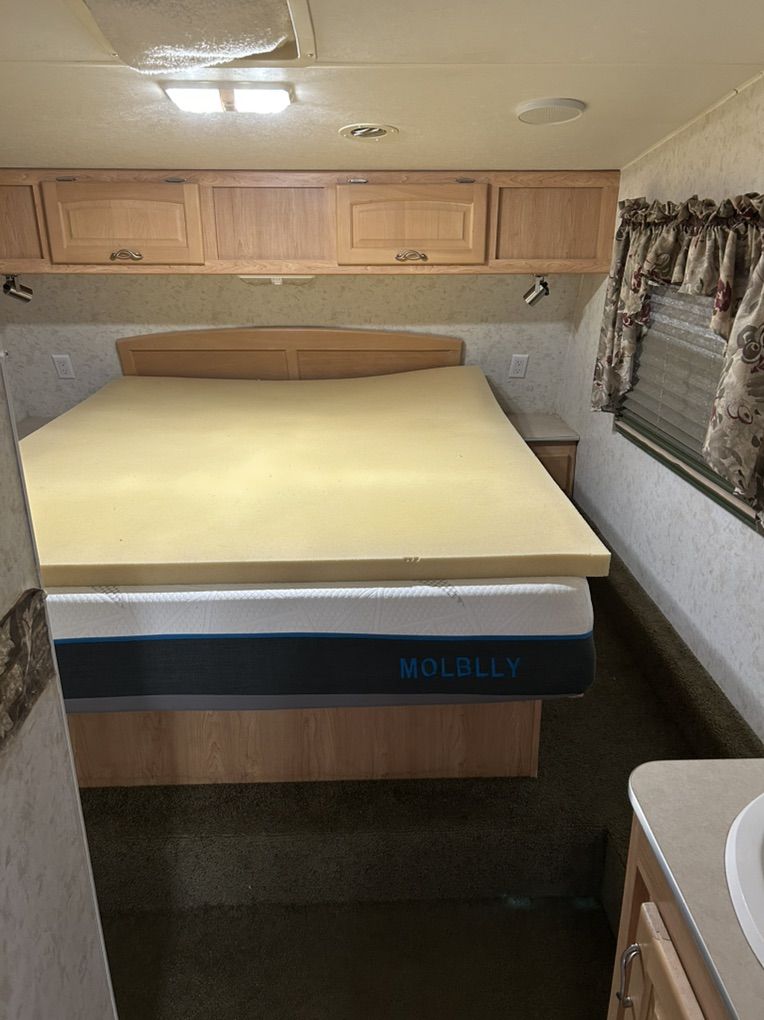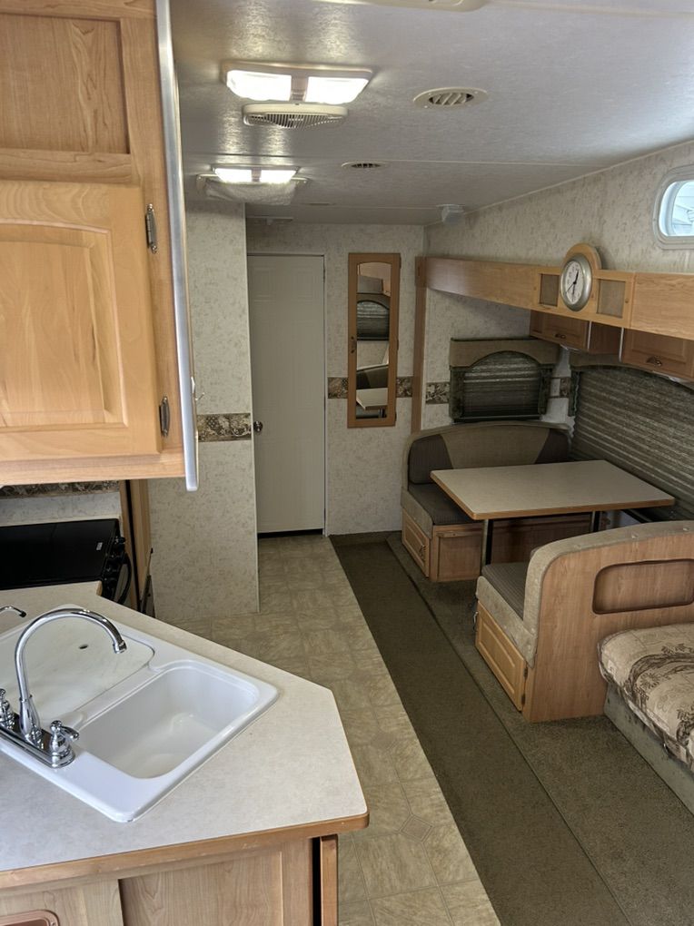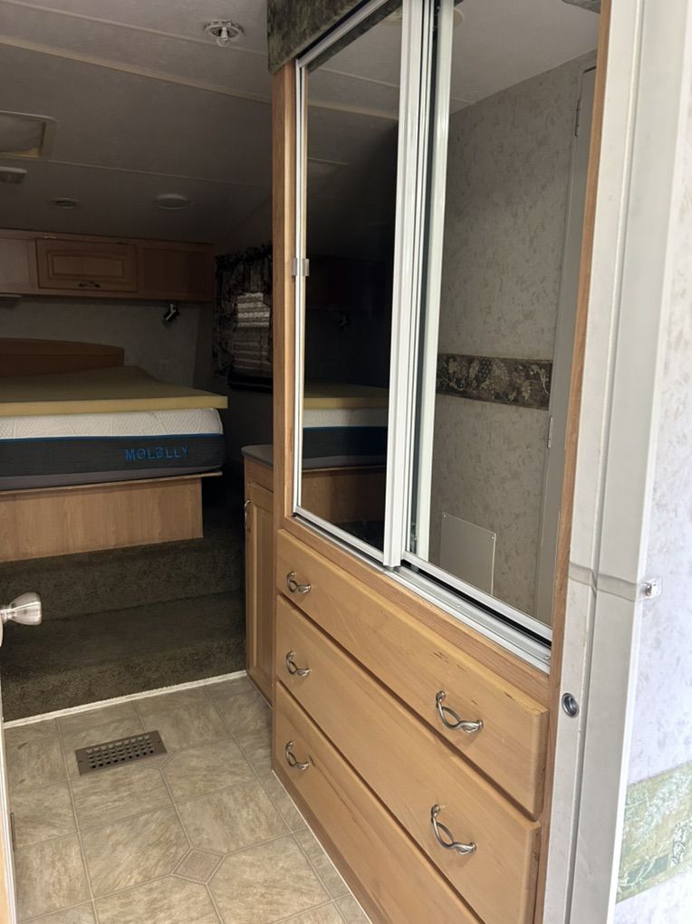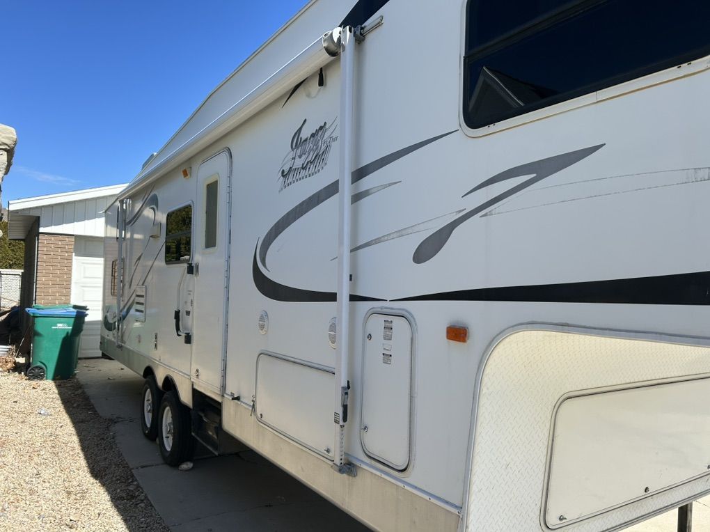 2005 Thor jazz Bunkhouse 2980 bh. This trailer is in excellent shape for the age. It’s the perfect family trailer with 3 bunks in the back of the trailer that is its own room with a door. Table and couch also fold down into beds. The trailer has tons of storage inside and out with a massive rear storage compartment in the back of the trailer. Roof is solid with no soft spots and I have always kept up on making sure the sealant is in good shape. All the appliances work as they should. Tires are in good shape. Has a rear trailer hitch and wiring for pulling doubles. Currently has a gooseneck adapter on but can remove if you would rather have the fifth wheel hitch. Trailer is ready to go have fun. Very clean trailer come take a look $10,000