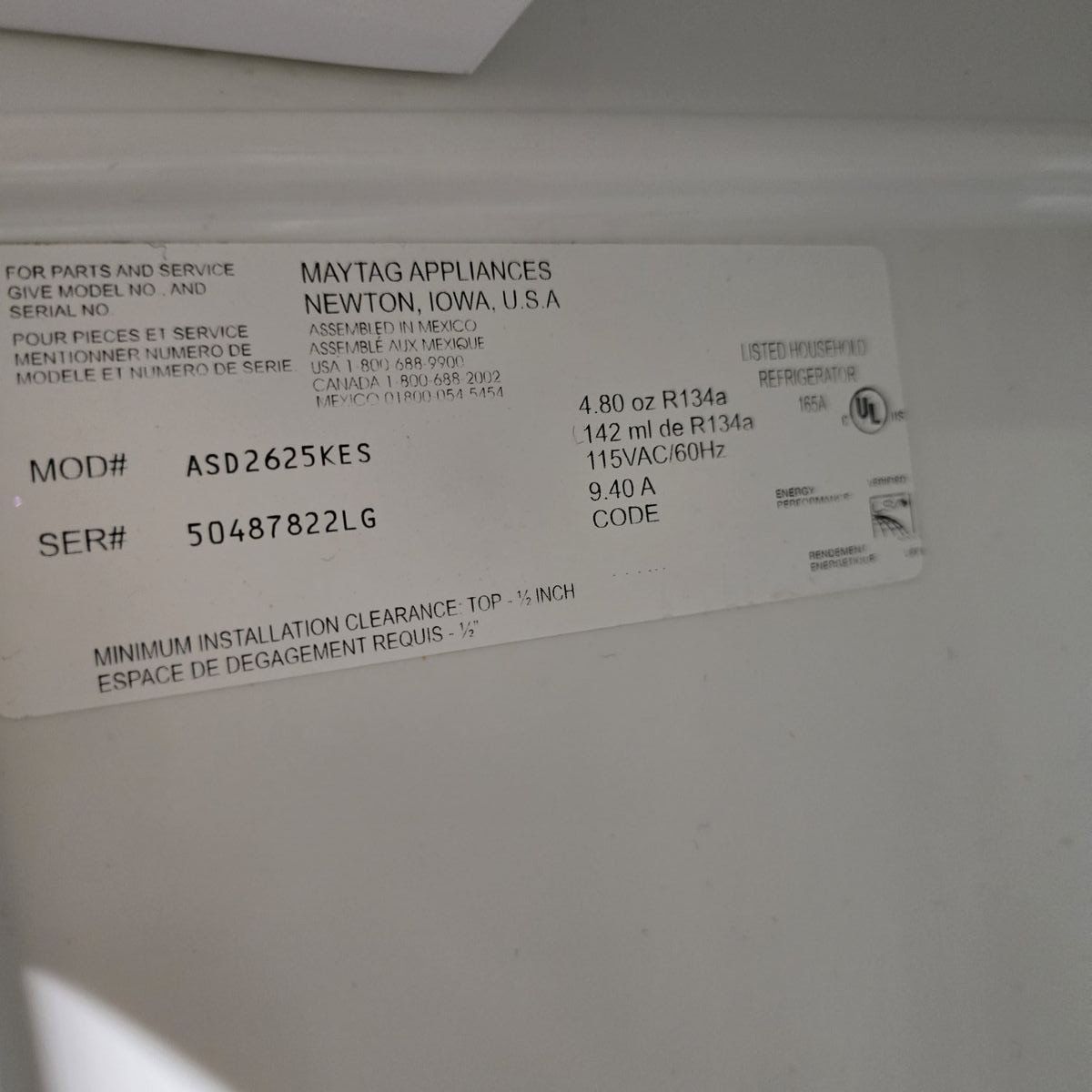 VenmoMaytag side-by-side refrigerator model ASD2625KES.