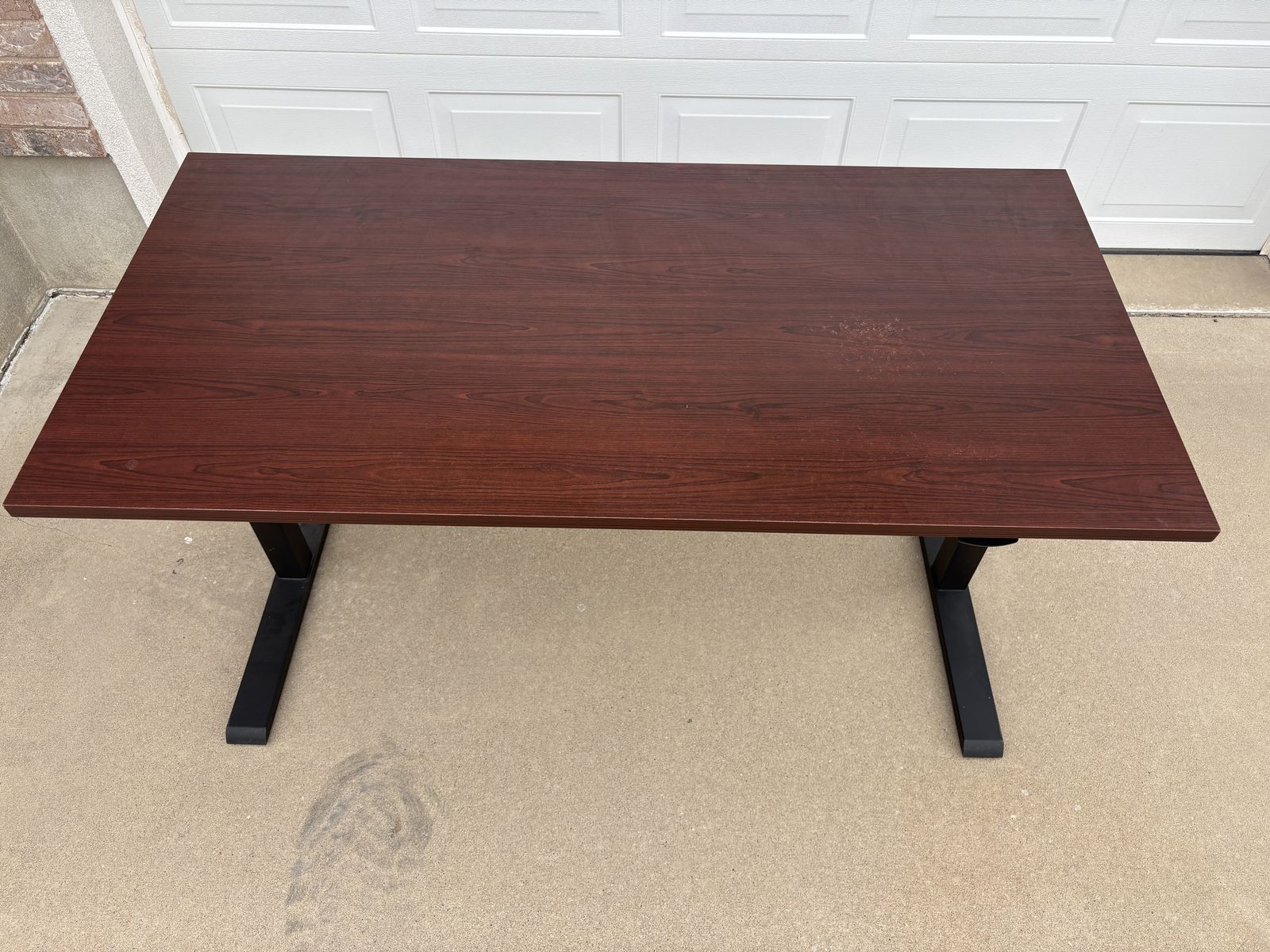 Good condition height adjustable desk with a clean wood top and sturdy metal legs.