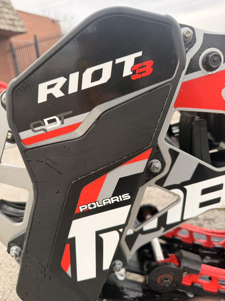 GooglePayRiot 3 Pro Gen 2 used one season. Has the QDT belt drive kit for better track spin. 3"X129 gen 2 track and inboard rails. Fox Pro model QS3 shocks with IBP. Has ARO bumper and snow flap for more wheelies and freeriding. It also has the updated 2025 rails.