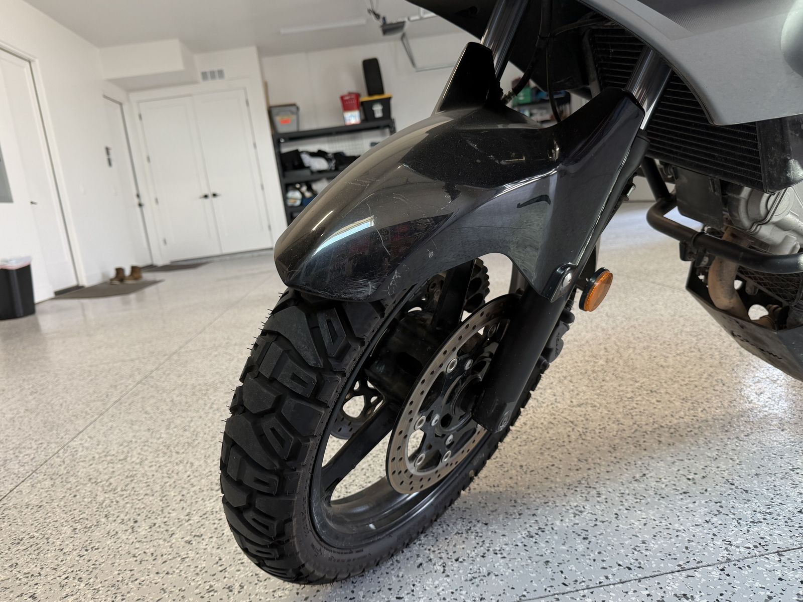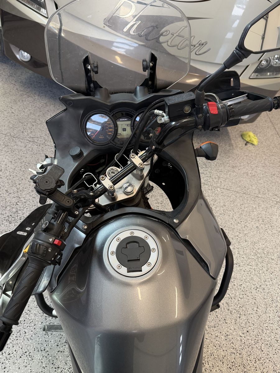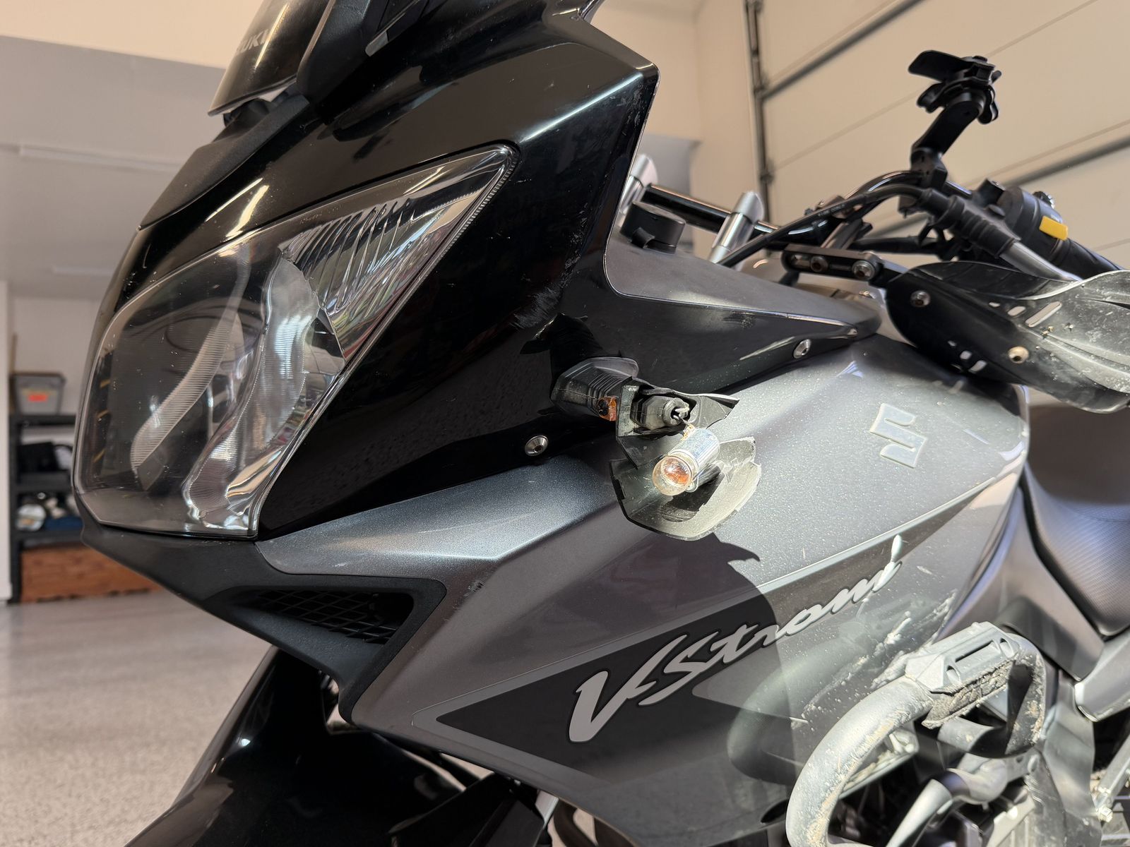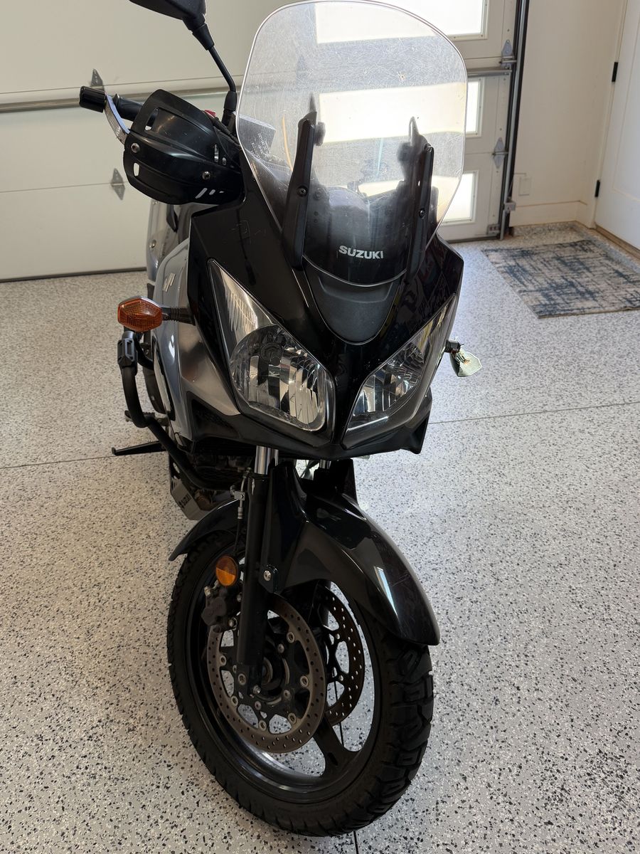 Has been dropped once, minor scratches, left front blinker is broken, and mirror is missing