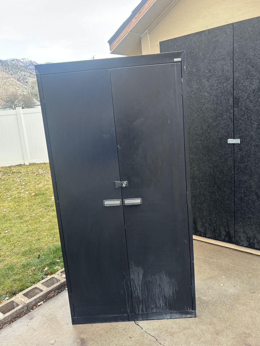 Sandusky metal garage cabinet 18”D 36”W 72” H Text only cash only