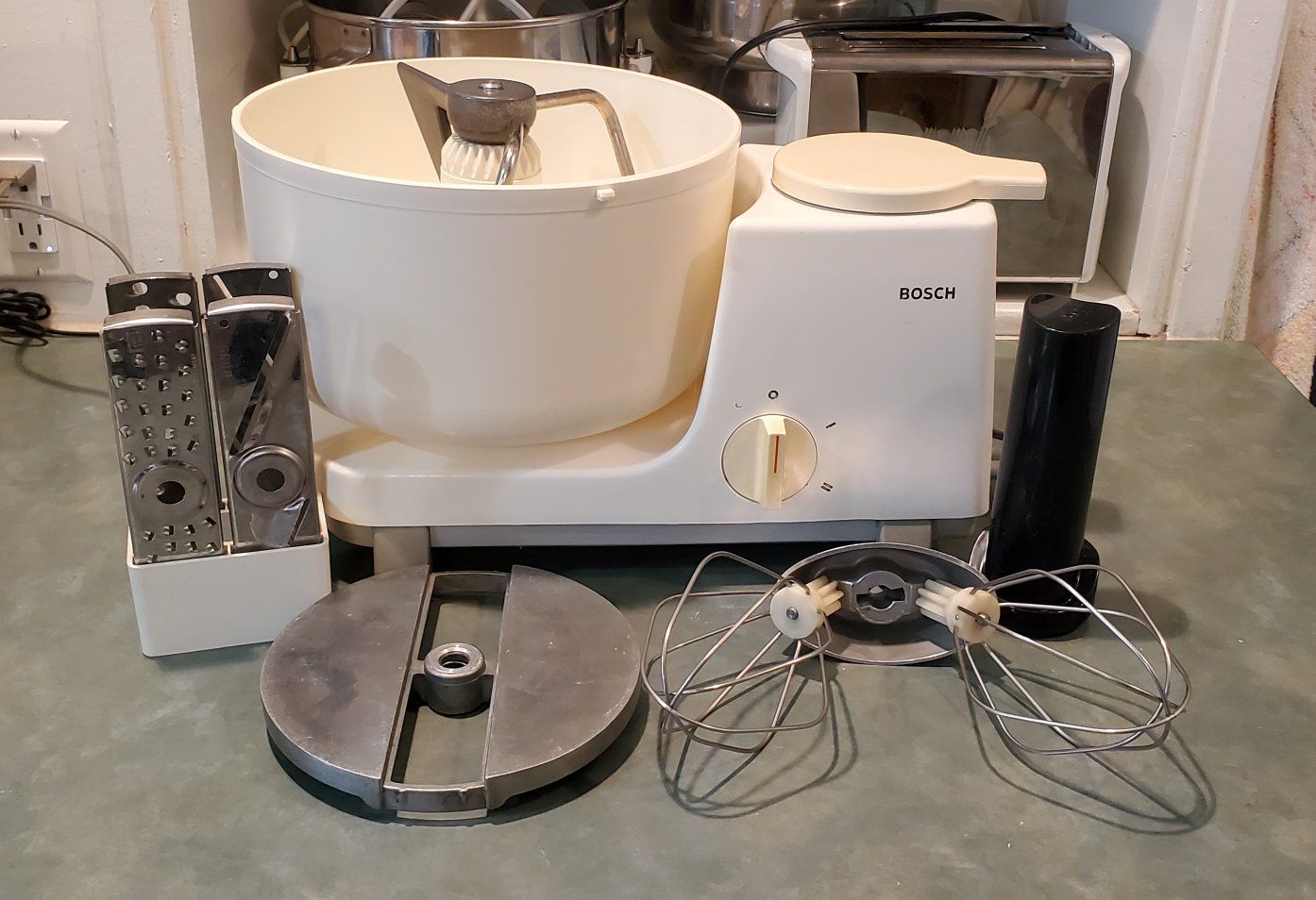 We are selling a Universal Bosch Mixer. It works nicely. It comes with the attachments you see in the photos. We are asking $200 CASH ONLY.