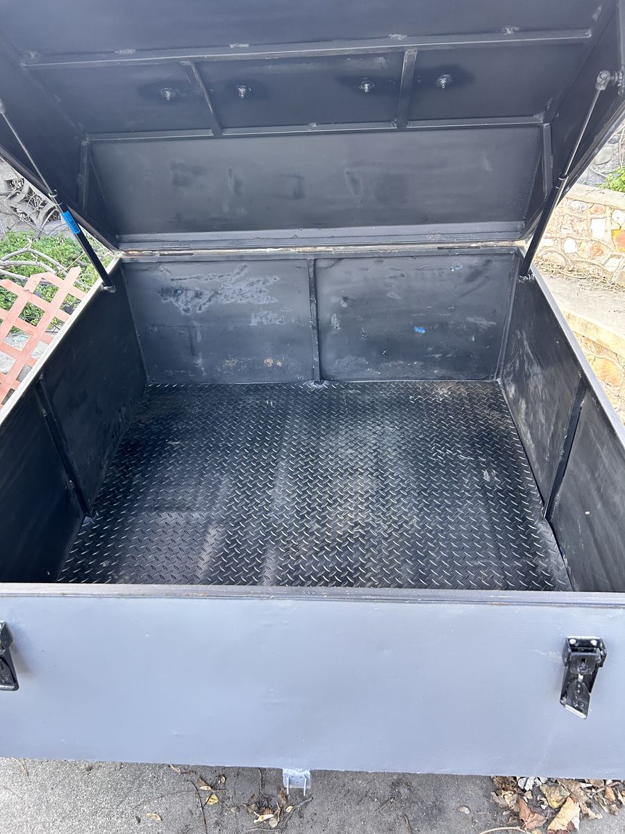 PayPalMy dad bought this trailer for his business, but ended up not using it even ONCE. So It's been sitting outside for 2 years now. It may look a little dirty, but it literally only needs to be wiped down. Everything about it is in excellent shape! The previous owner customized it a bit (with the rubber lining inside). Good little trailer!