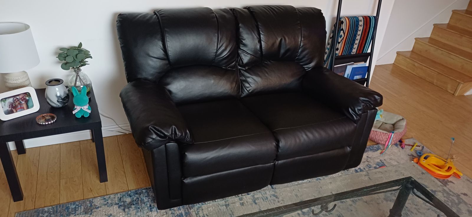 ApplePayThree piece couch set five of the six seats have manuel recline in great working order! The 3 seat sofa has worn tears hence the cover. It matches the other two. We thought of getting covers for all prices and it wouldd look amazing. Other two Couch pieces are in great condition. We do have a cat.