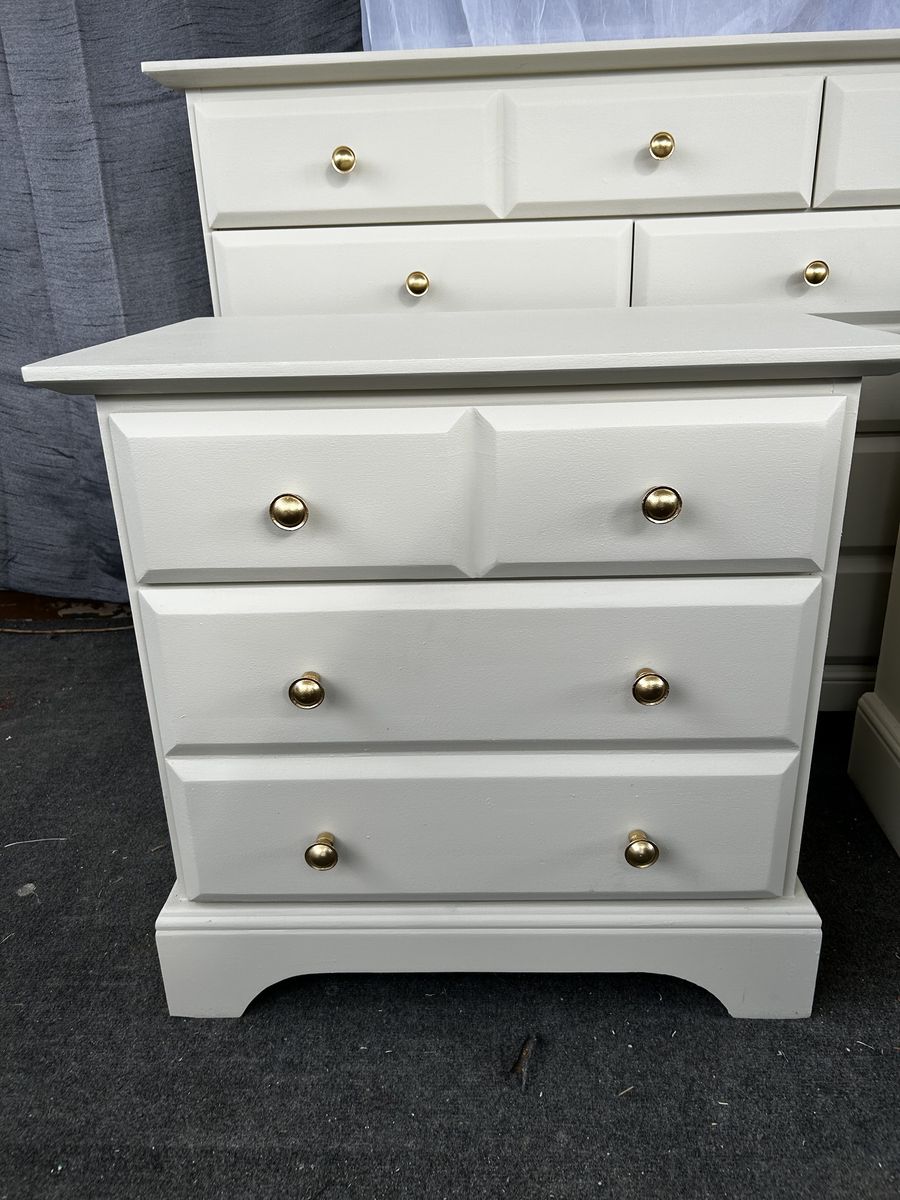 Zelle7 Drawer Dresser and Nightsand set SOLID WOOD great condition no scratches everything works great! Measurements are Dresser 62” wide 36” Tall 18” Deep Nightstands 26” Wide 25” Tall 18” Deep EA. Located in west valley city. $385 for the set or