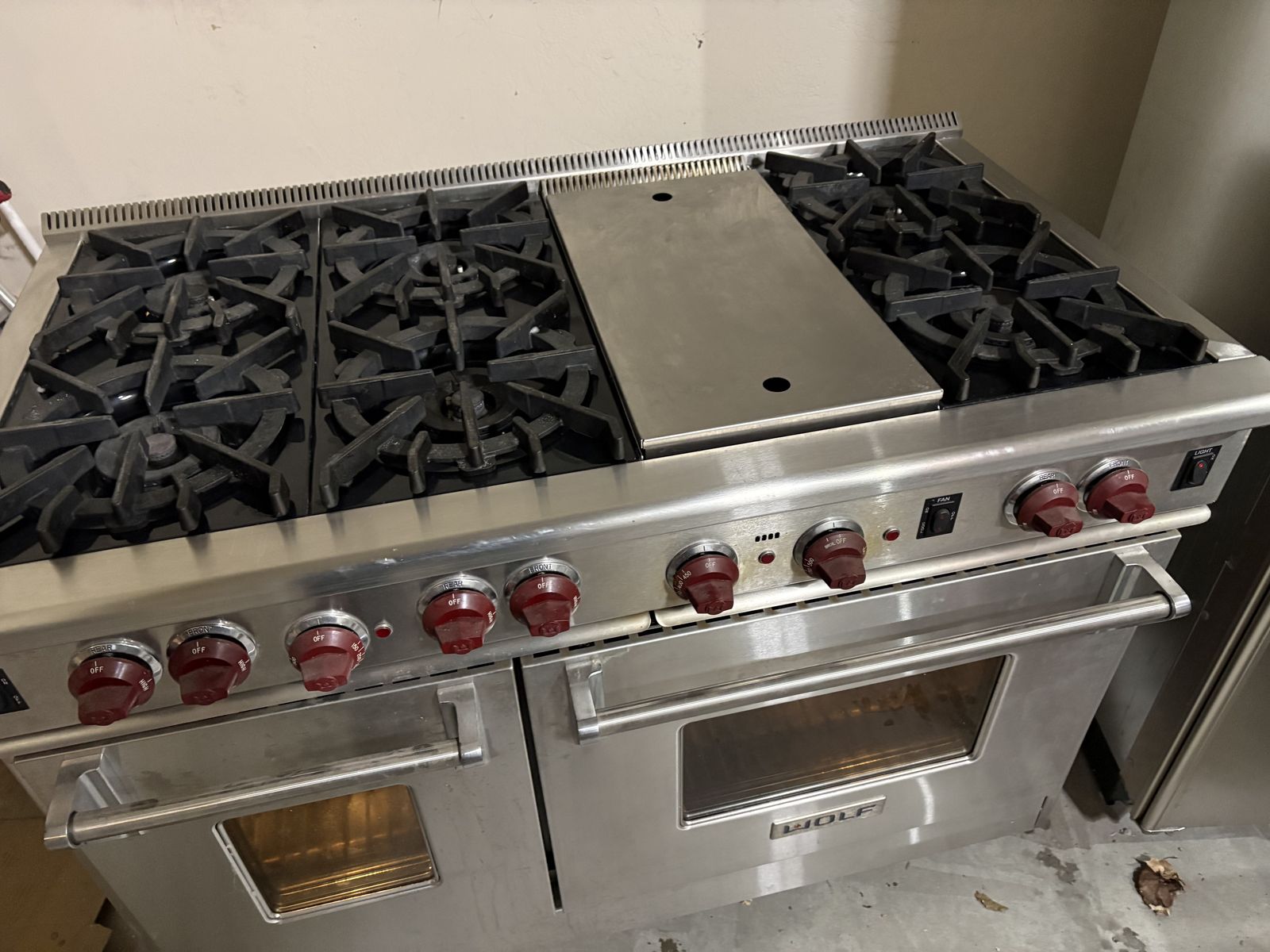 Venmo48” Wolf Natural Gas Range R486g taken from a park city vacation home, so not consistently used. Fan and lights work. Two of the igniters need to be replaced. Also have the range hood and a Sub-zero 632 fridge available for sale.
