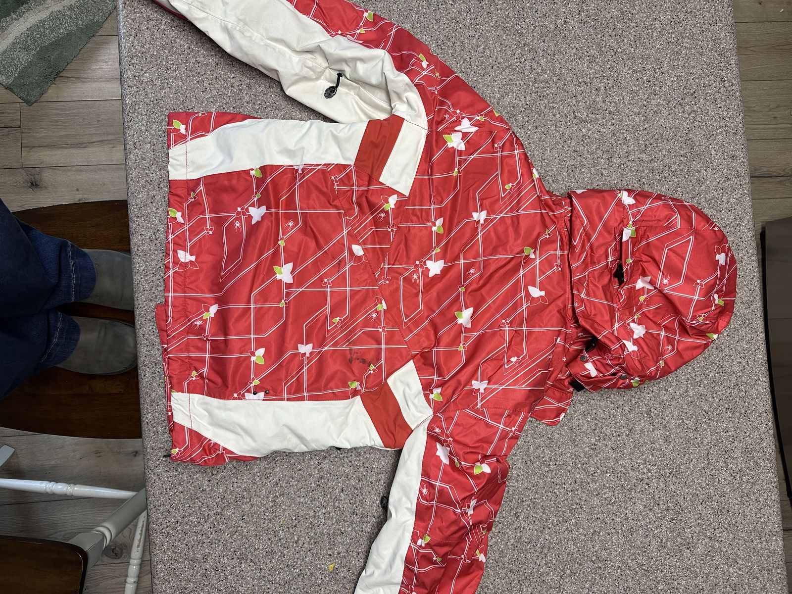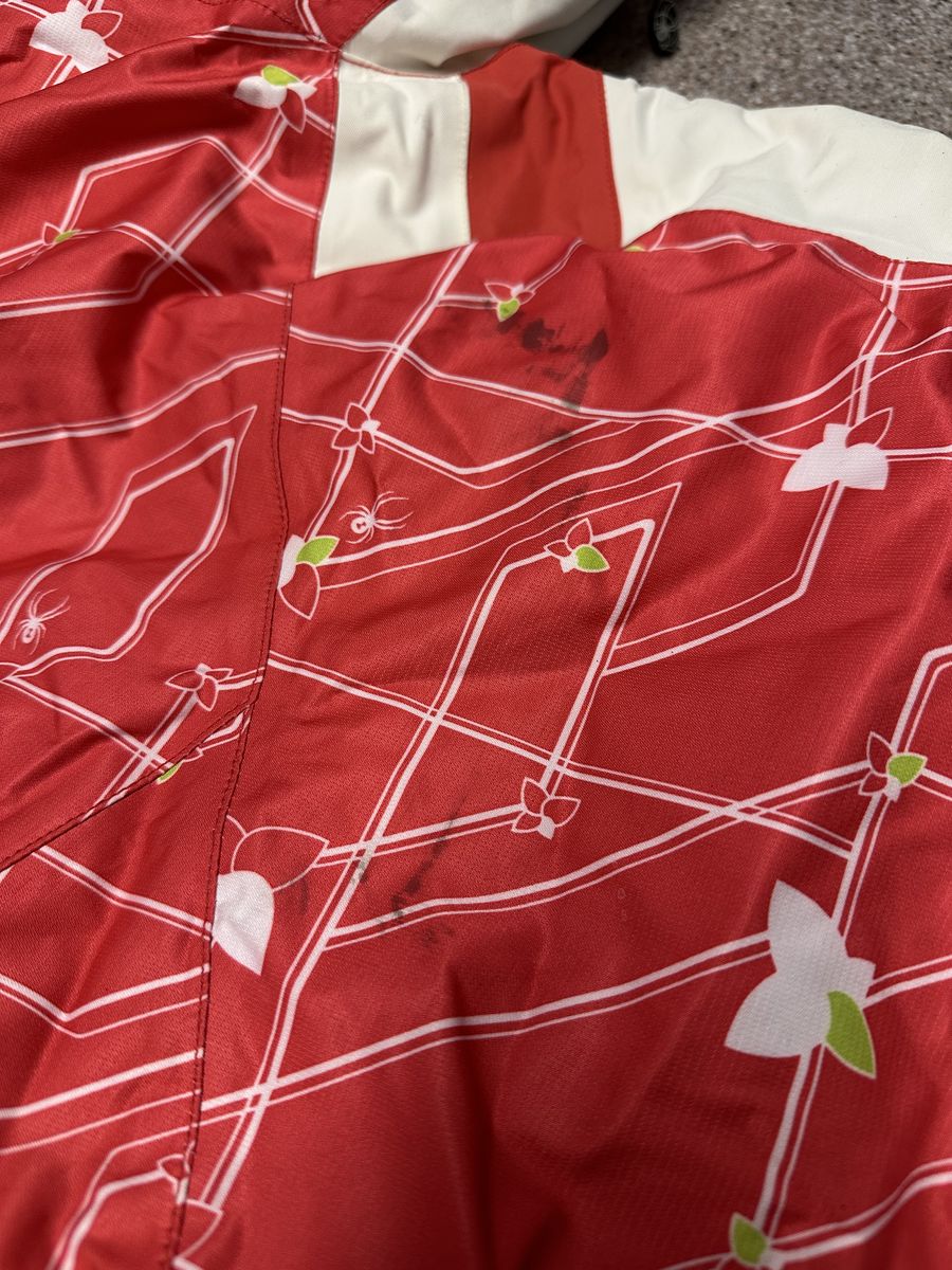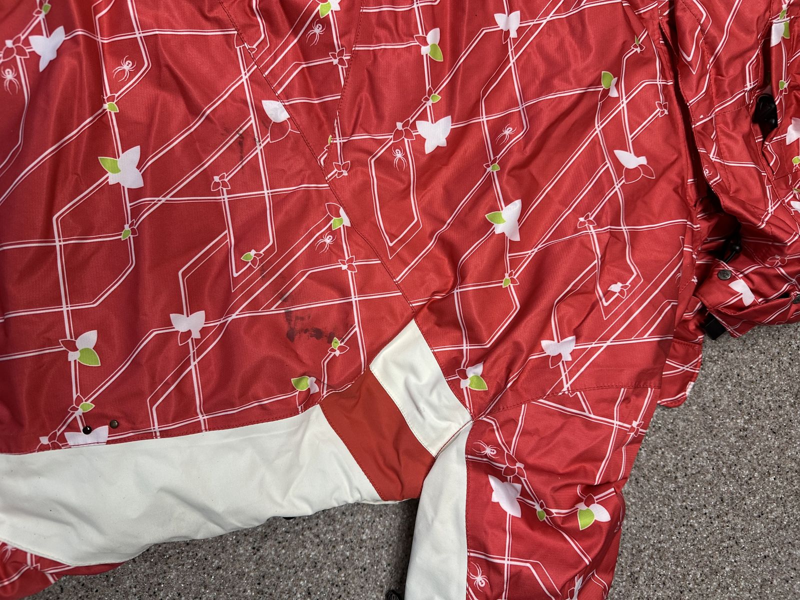 Features: • Brand: Spyder • Women’s size 4 • Hooded ski jacket • Insulated for warmth • Adjustable cuffs and pockets • Signature embroidered Spyder logo • Unique spider-web floral pattern