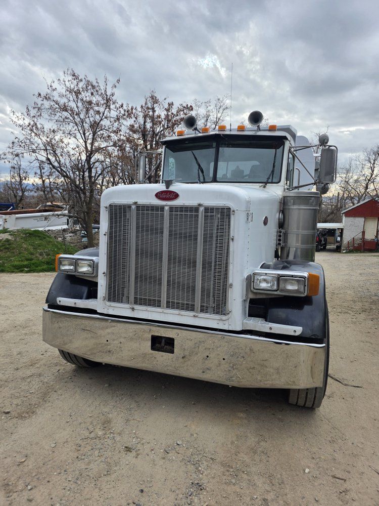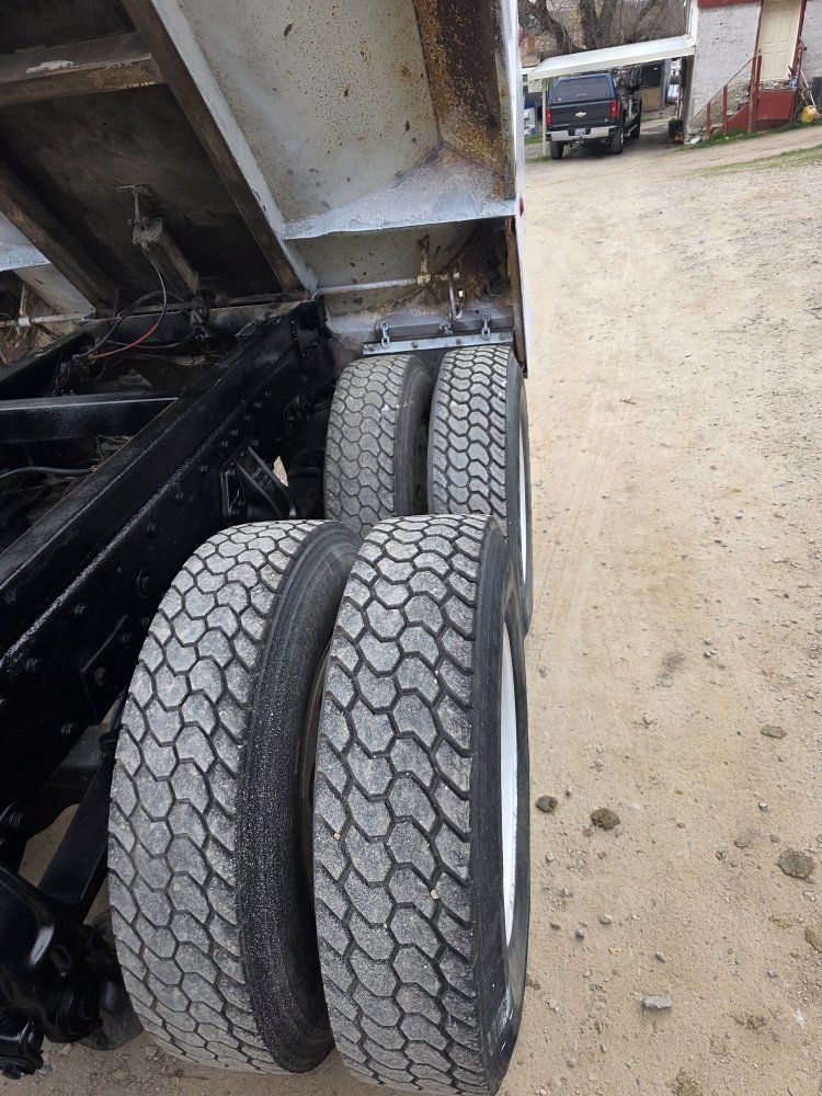 Peterbilt 378 Dump Truck. Detroit 60 engine just overhauled with documentation, less than 1,000 miles on complete overhaul. 15 speed transmission, 404 Eaton rear ends 3:70 ratio, matched tires in good condition. 315 size tires on steering for greater load capacity. Rock bed with high lift gate, automatic roll tarp.