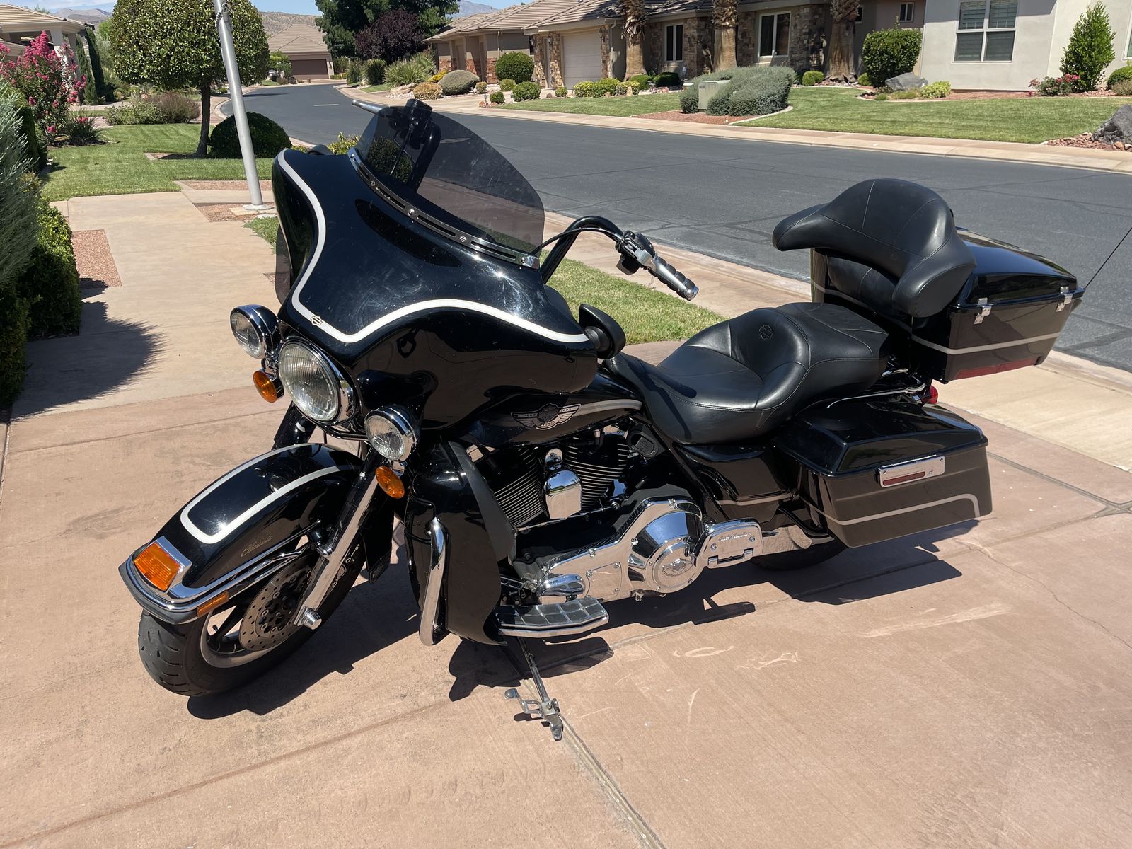 2003 Electra Glide 100 year anniversary Harley Davidson low miles air ride too many extras to list FLHTCI 103 ci with Screaming Eaglegear driven cam roller rockers V/H pro pipe 2-1 Jim's 6 speed transmission led flashing lights fully chromed dino's out at 110 hp work performed by Las Vegas certified mechanic over 37,000.00 invested selling for a family member Please feel to reach out if you have any questions.