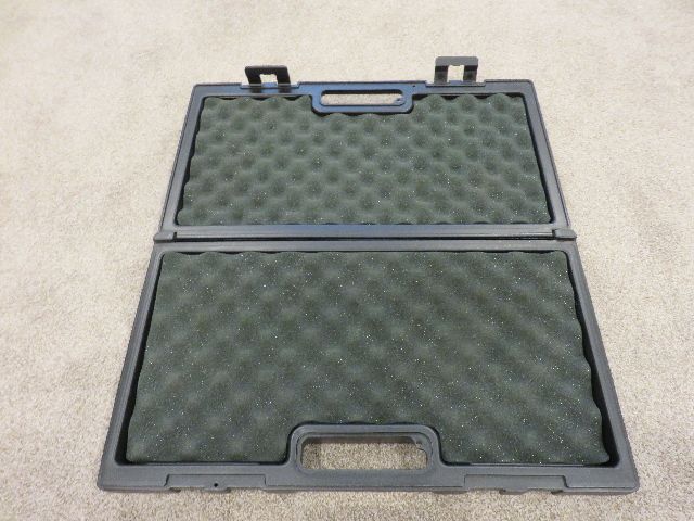 As the pictures show, this case was never used; there are no depressions in the foam as he bought this for taking his two target .22 handguns to the range and competitions, but health issues arose and he stopped shooting before it was used.