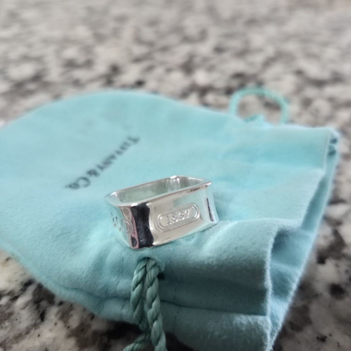 VenmoAuthentic Tiffany & Co. 1837 soft square ring in sterling silver. Classic Tiffany design with the slightly rounded square shape and bold engraving.
