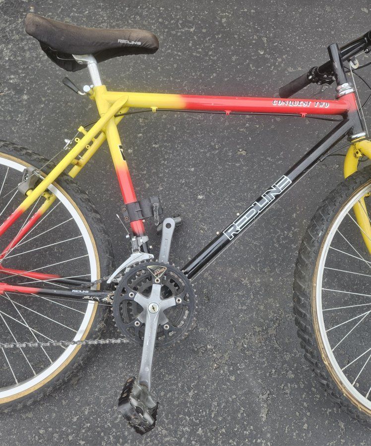 PayPalNICE VINTAGE, SURVIVOR, 100% ORIGINAL 26" REDLINE CONQUEST TWO MOUNTAIN BIKE WITH ARAYA WHEELS. BIKE IS IN GOOD VINTAGE SURVIVOR CONDITION. IT COULD USE A TUNE-UP