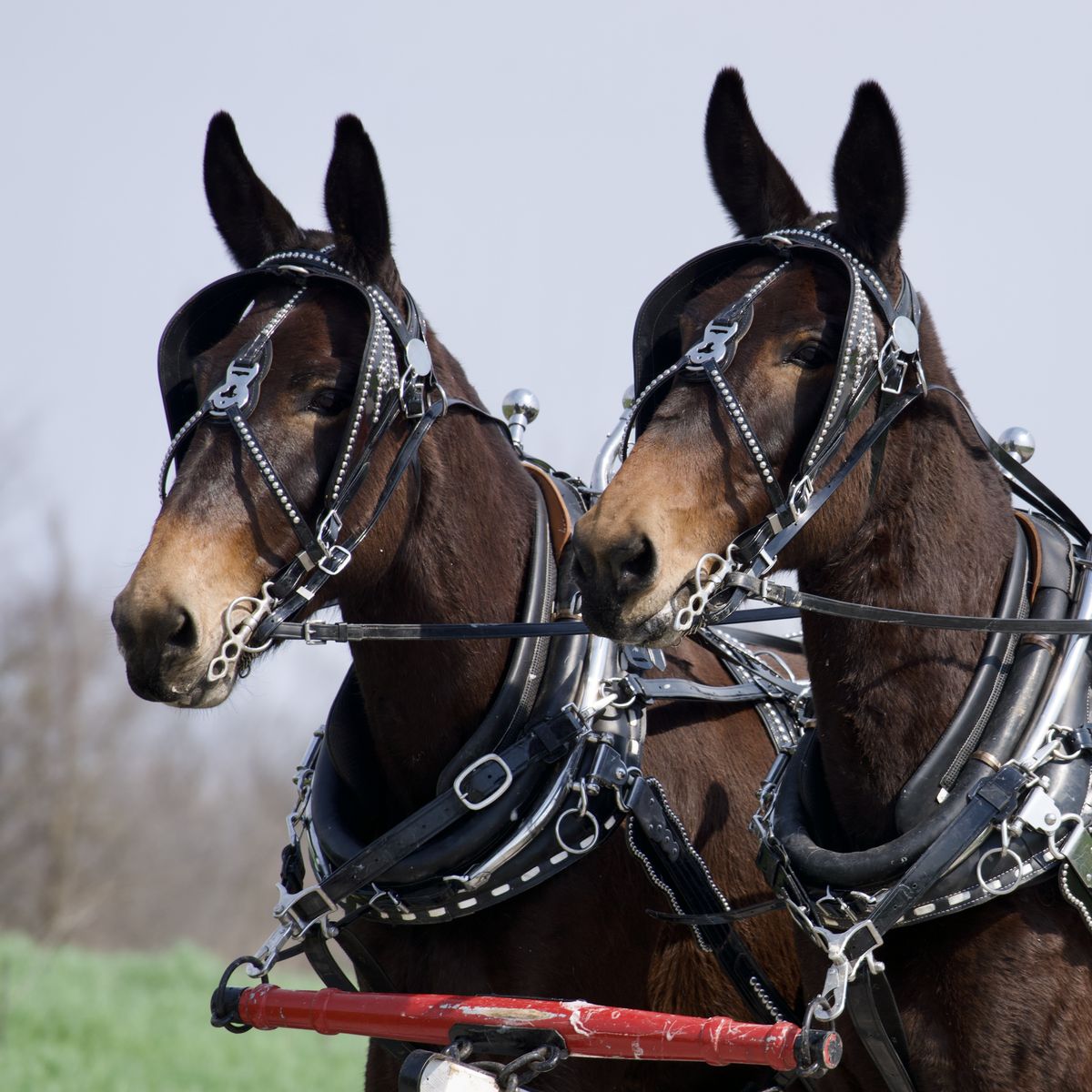 We are your one-stop shop for draft horses, mule teams, harnesses, wagons, and farm equipment.