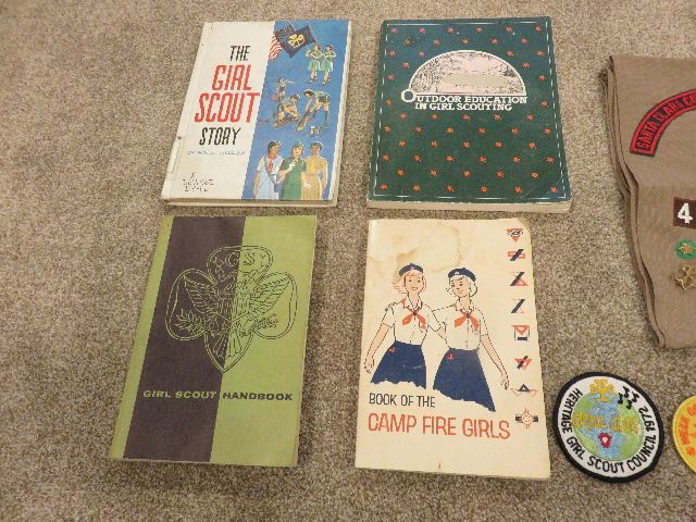 As the pictures show, I am selling as a single lot for a single price; a collection of vintage Girl Scout memorabilia that includes four books, 2 sashes with pins and badges, and 3 event patches from the early 1970's.