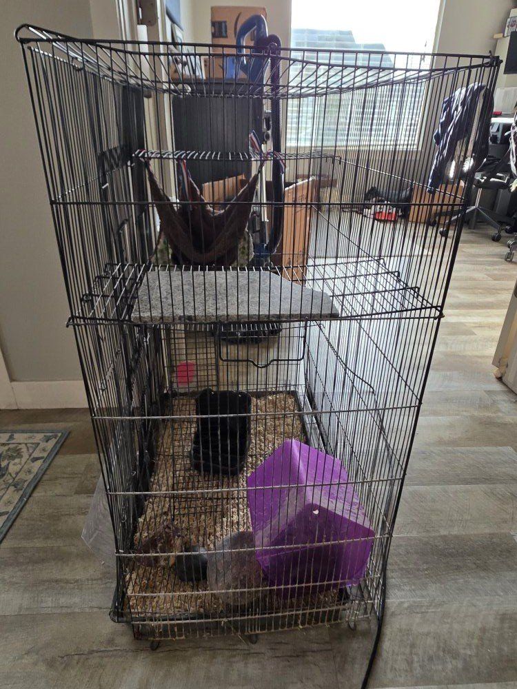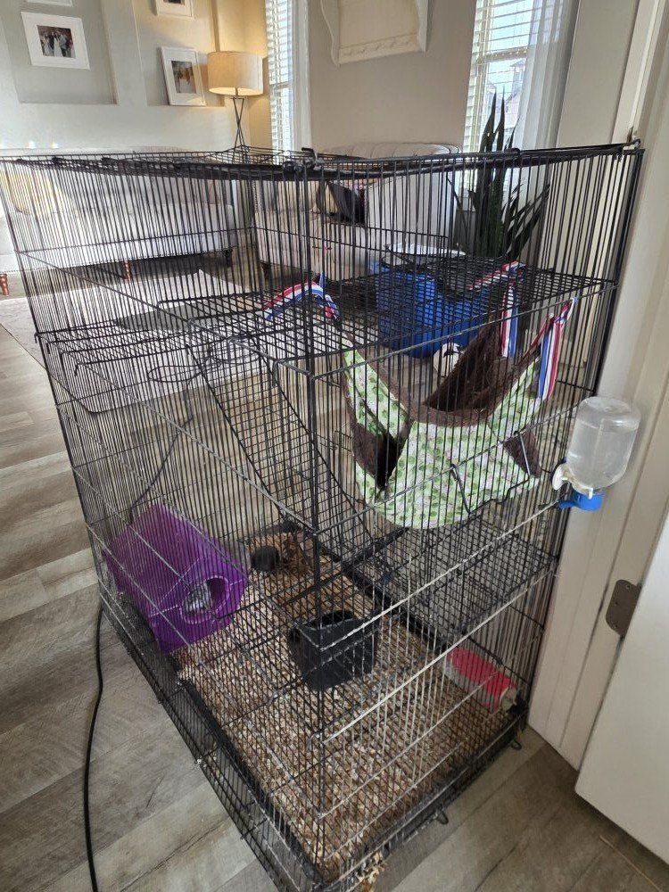 VenmoThis is moose. He is a male chinchilla and one of the softest animals on the planet. They are incredibly fascinating creatures. They energetic and they like to be played with. Will happily ride on your shoulder while you walk around the house. Definitely a different pet then the run of the mill hamster. Everybody loves him and wants to pet him. We've had them for four or five years we think. Our youngest typically takes care of him but she really wants to move into a tortoise and nobody else wants to clean the cage and give him the love he deserves. We have some hay in the blue bin and a pop out pen that you can kind of put in a living room. We have a little carrier and some hay pellets and his dust bath that goes with the cage setup in the pictures. He is ready to go to a good family. We just cleaned the cage as well. Let me know if you're interested and want to come meet him. Make me an offer .