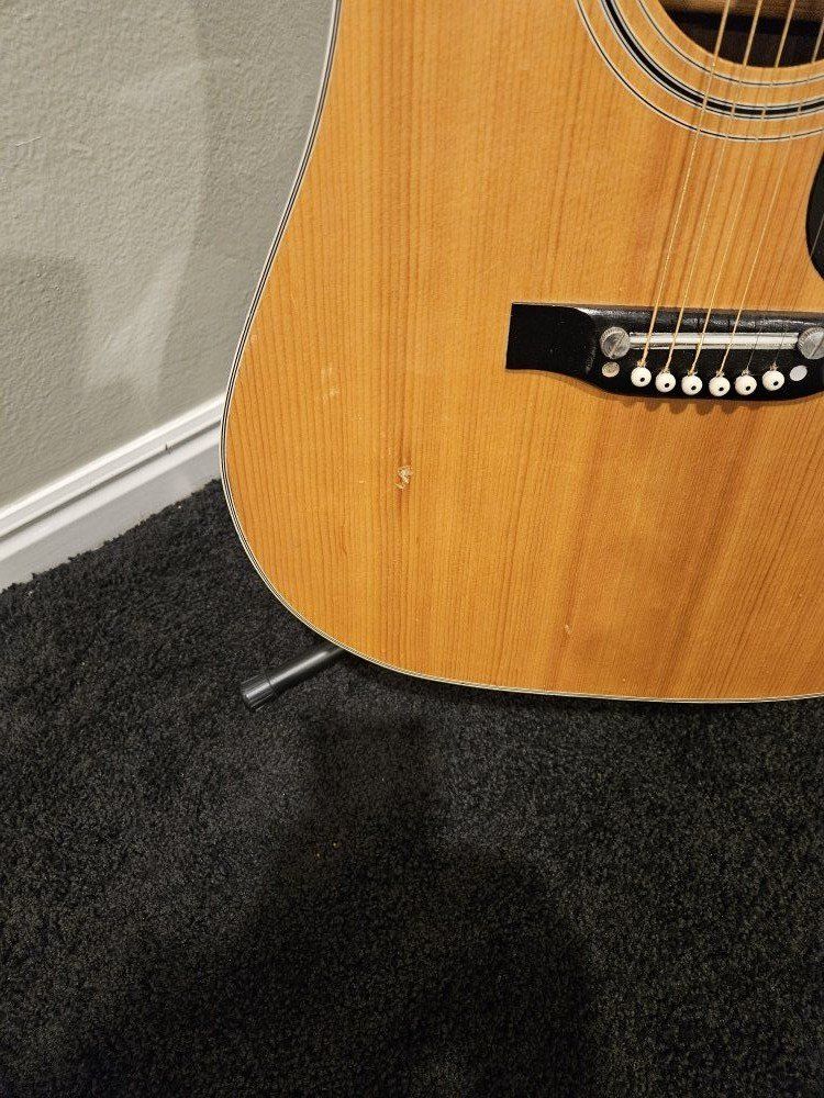 Nice guitar in good shape except for the front ding in the picture. probably could use a new set of strings.