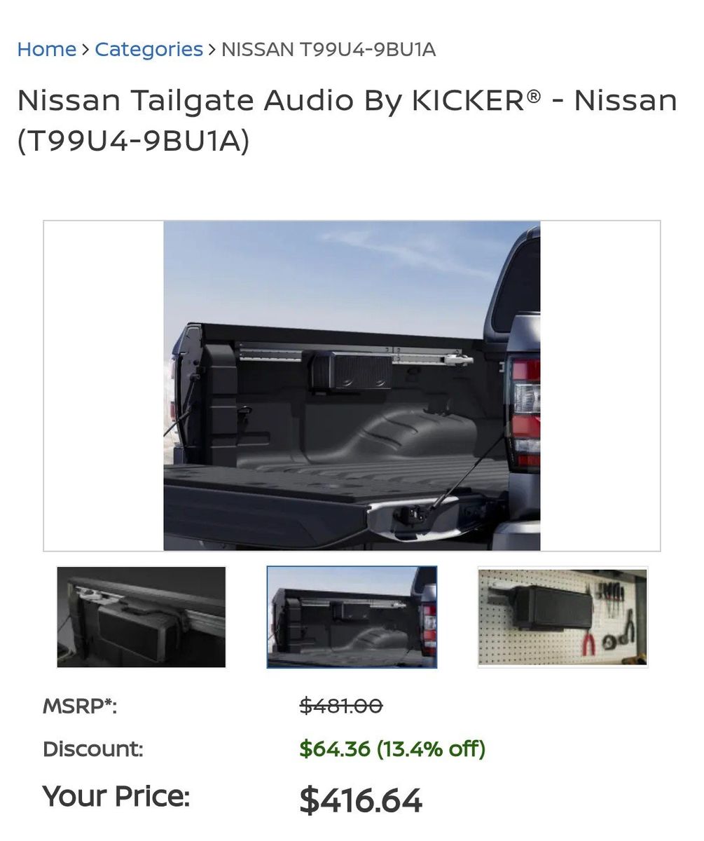 Other Names: Nissan Tailgate Audio By Kicker, Audio, Nissan Tailgate, By Kicker, Tailgate Audio By Kicker, Nissan Tailgate Audio By Kickeru00ae, Exterior Audio Kit, Outside Audio, Exterior Audio, Tailgate Audio, Exterior Audio Kit, Kicker