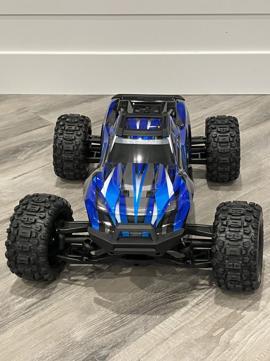 VenmoNew never ran Traxxas Maxx, It's the latest version/model part# 89086-4 comes with a new Zeee 7000mah 4s battery (available on Amazon), upgrades include a Treal steering rack and blue aluminum servo horn, traxxas blue aluminum steering links and gear cover and traxxas grey aluminum shock collars and 2 new body's blue and rock and roll (sorry I took off most of the stickers} $885 invested not including tax so the price is firm at $575 which is less then the cost of a new one without tax and all the upgrades, battery and extra body which is $75 alone...you will need to buy or use your own charger and it doesn't have to be an overpriced traxxas charger because I changed the connector to an XT90.. it also comes with a traxxas standard servo adapter and aluminum servo horn